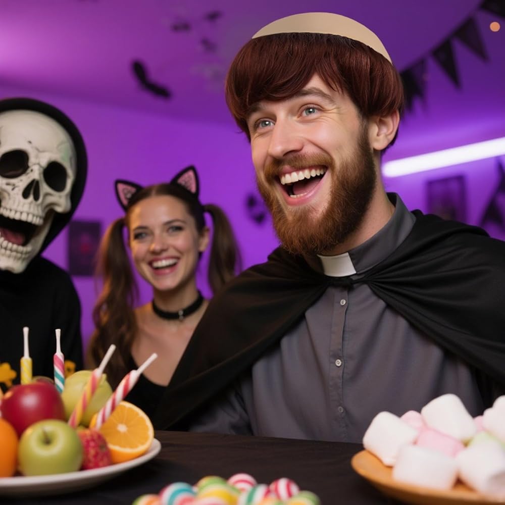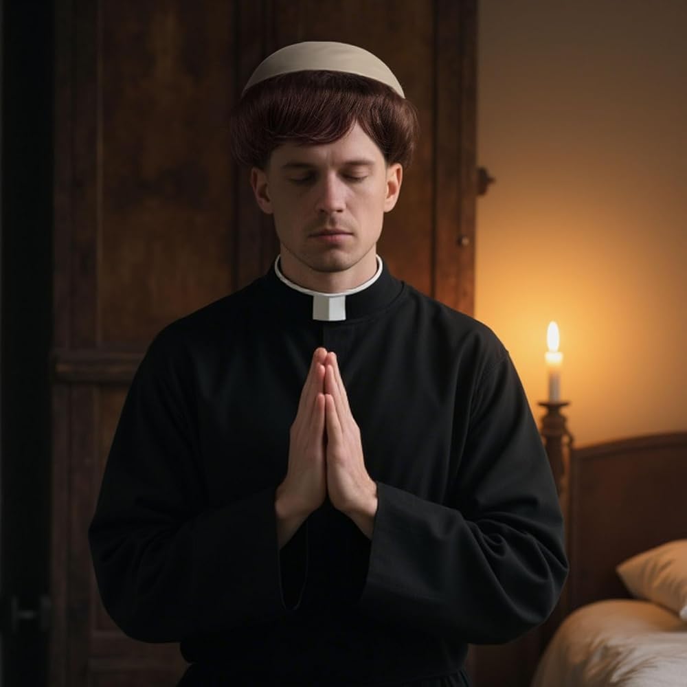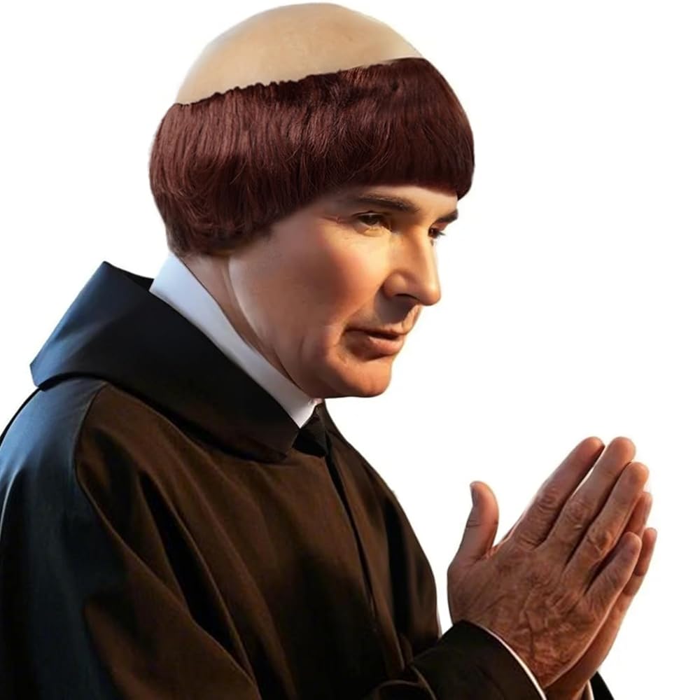 JoneTing Monk Wig Funny Wigs for Adults Brown Ugly Wigs for Men Short Browned Bald Wig for Friar Costume Man Cosplay Red Brown Funny Hair for Halloween Christmas Themed Party Outfit【+ Hair Cap】