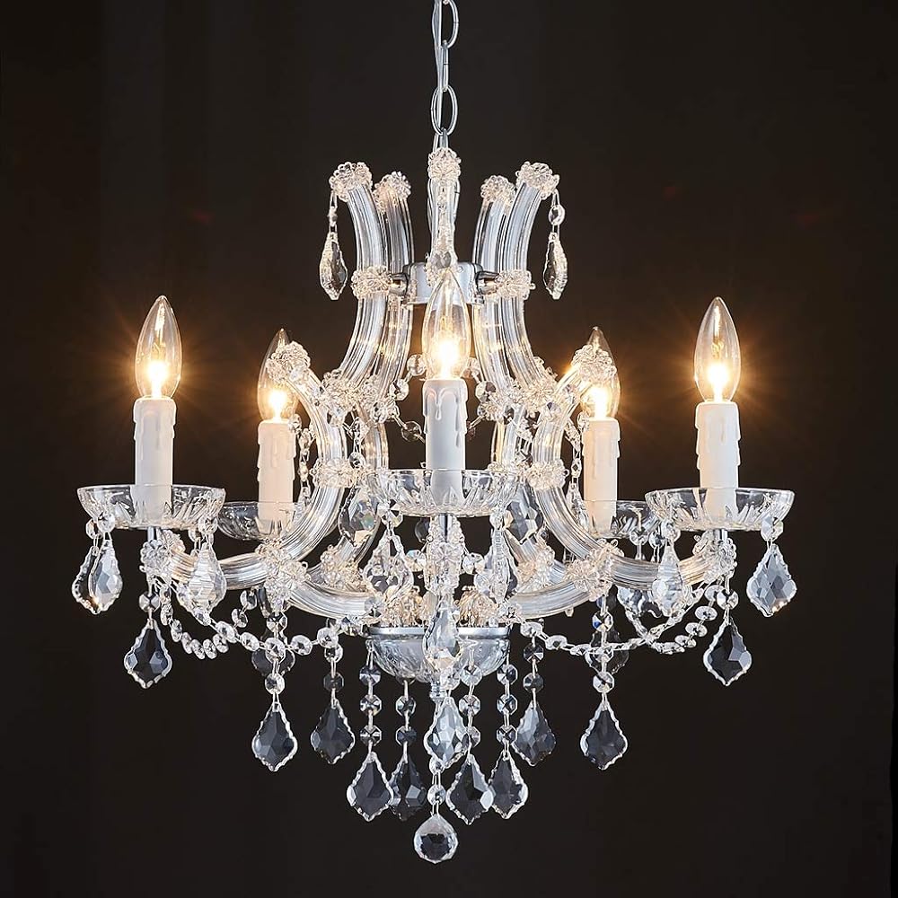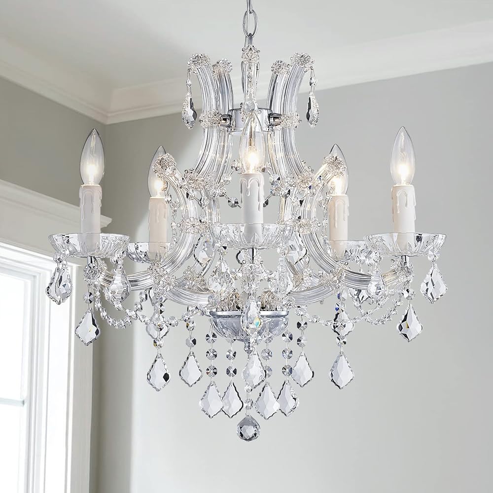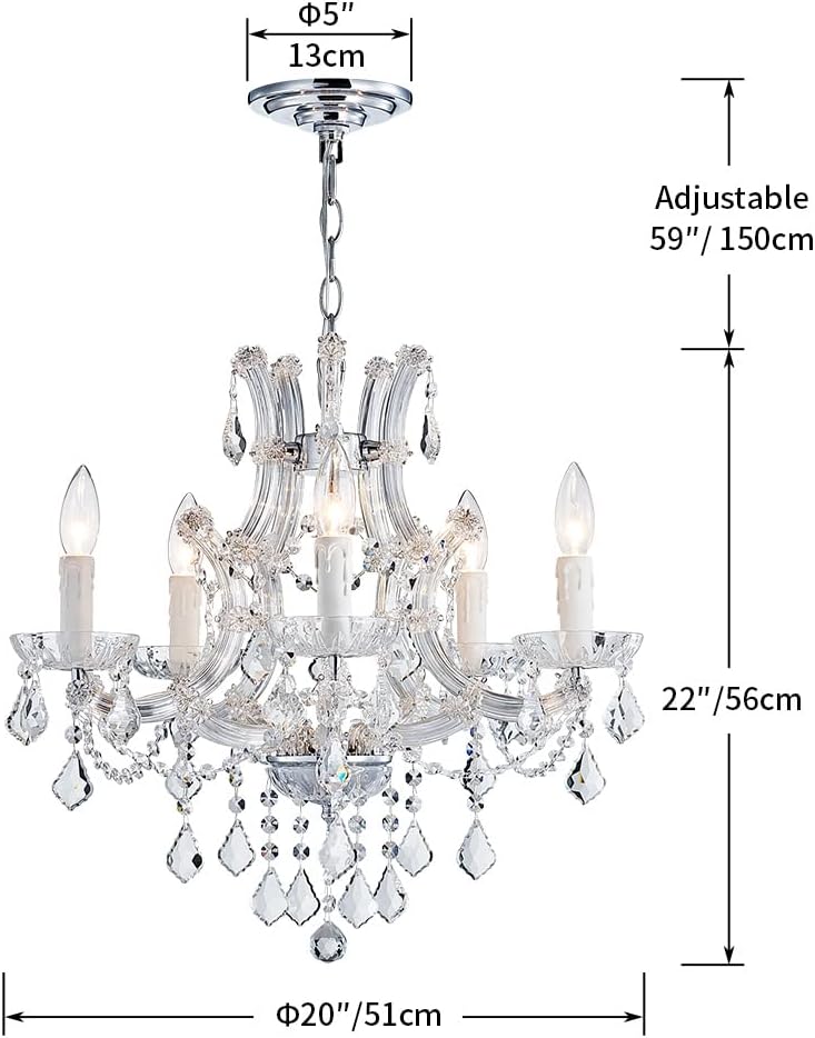 Saint Mossi 5 Light Crystal Maria Theresa Chandelier, Modern K9 Crystal Chandelier Lighting,Crystal Pendant Lighting Fixture for Dining Room,Bedroom,Living Room,H22 x W20 with Adjustable Chain