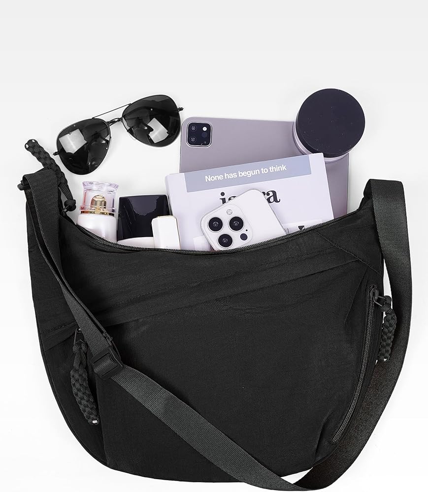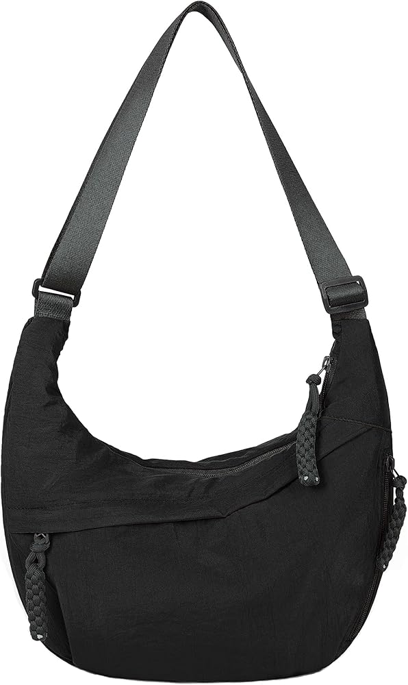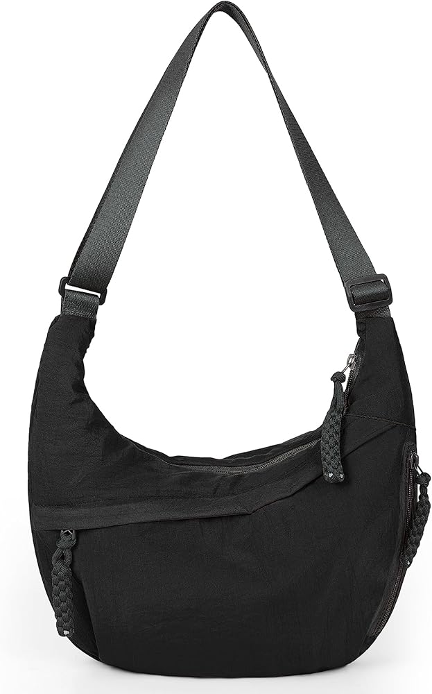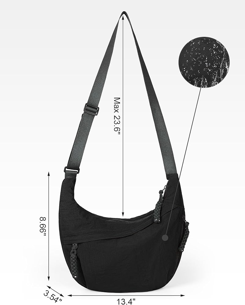 【MULTIPLE POCKETS】Dimensions: 13.4x8.7x3.5 inches. This nylon crescent bag features 3 zippered pockets outside and 2 slip pockets inside, making it easy to organize and safely carry all essentials.