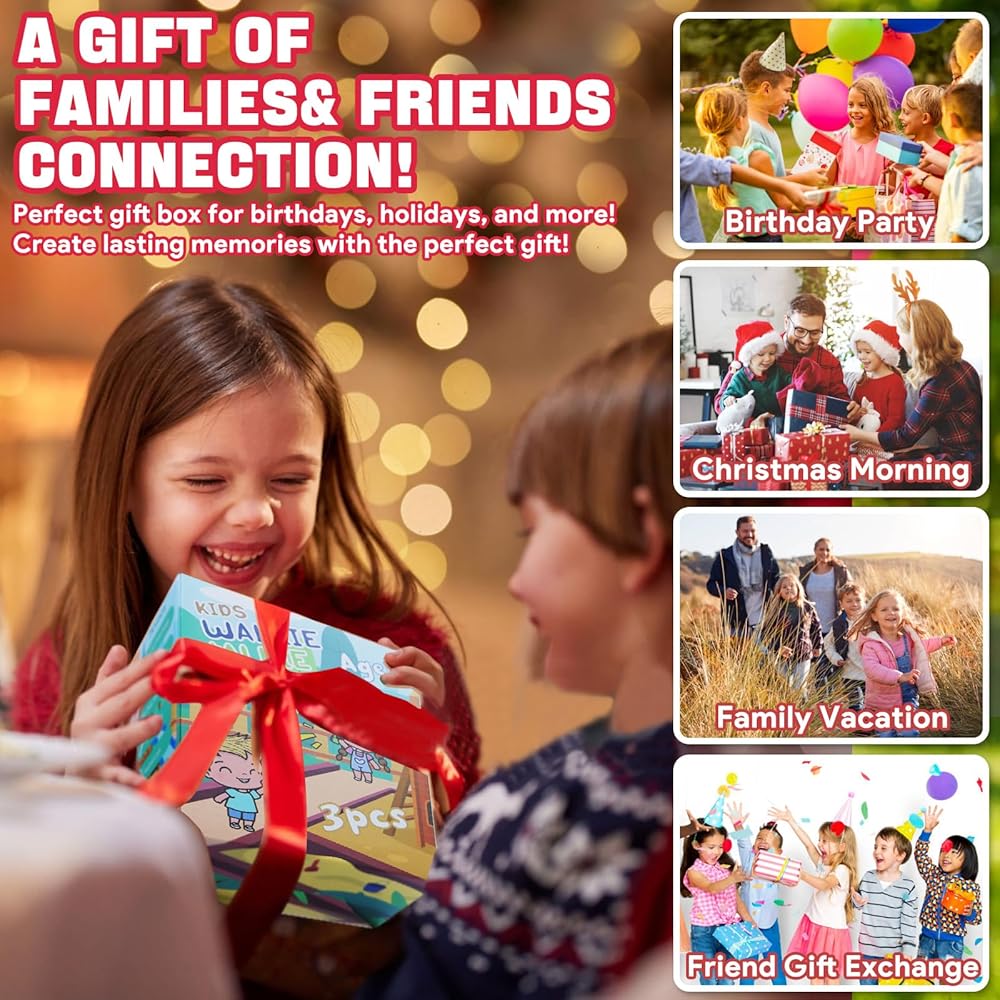 Real Kids Walkie Talkie & Easy to Use: Come with 3 walkie-talkies, 3 lanyards, 3-in-1 charging cable, and a gift box. With 22 main channels, 99 sub-channels, and a total of 2,178 combinations, kids can enjoy safe, private communication. Features include 10 customizable call tones, LED flashlight, VOX hands-free function for talking without pressing the "TALK", perfect for indoor& outdoor use. Encourage kids to be creative, explore, and work together with this all-in-one walkie-talkie set!