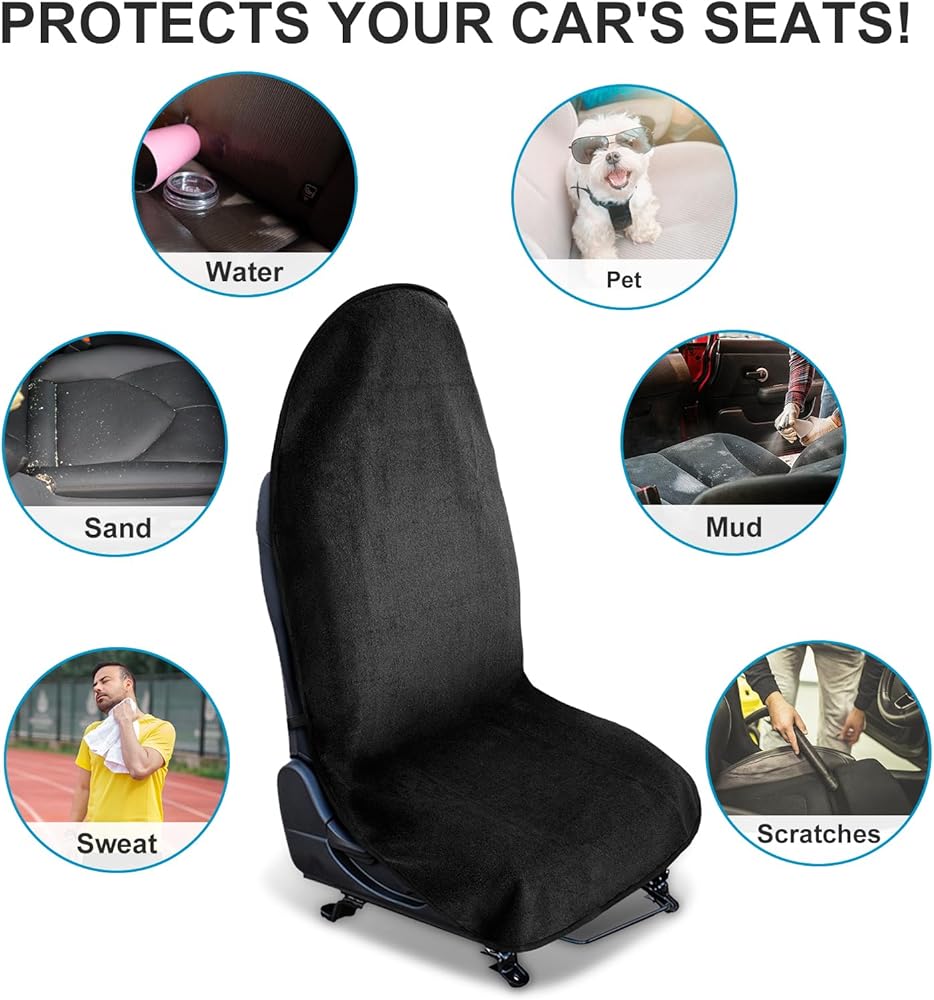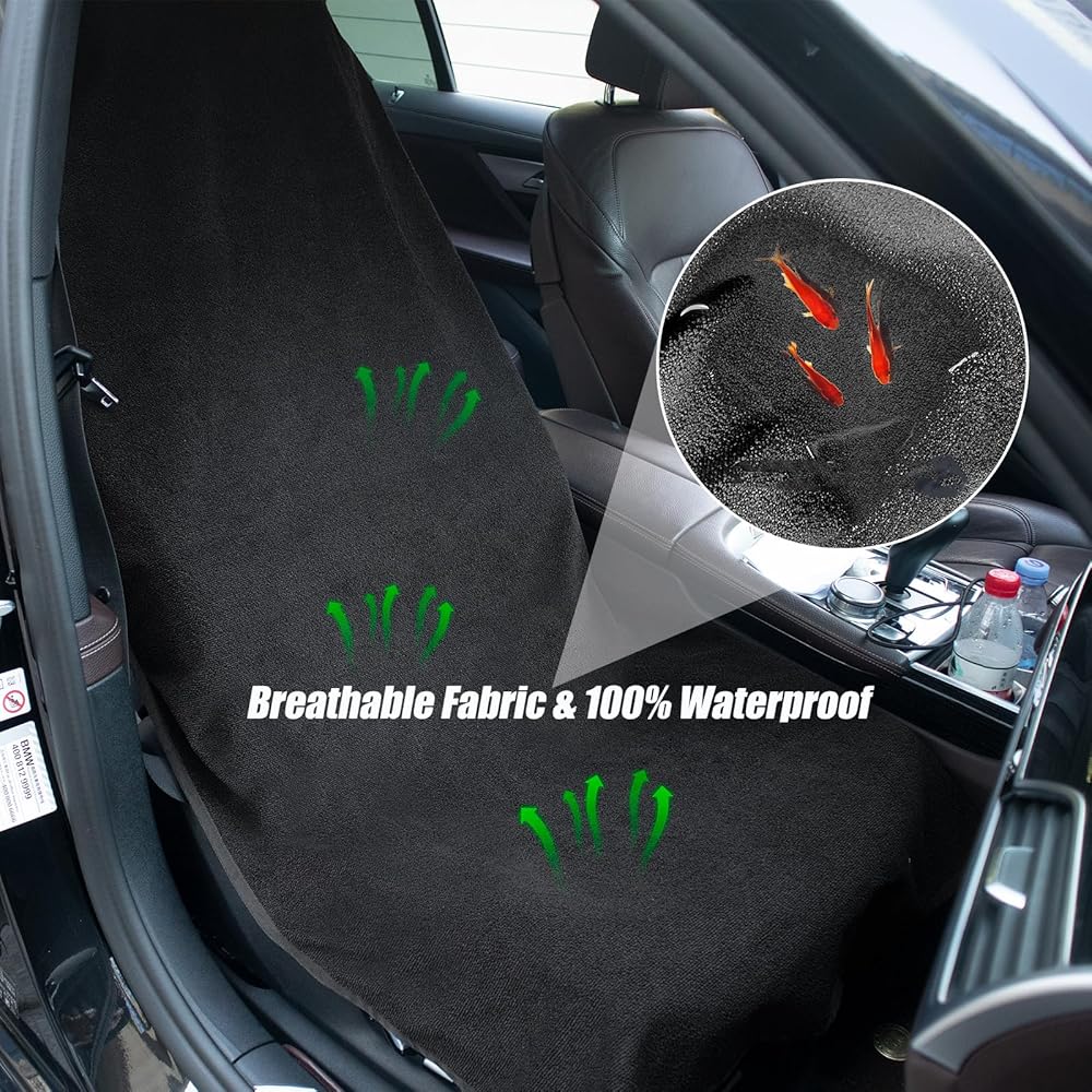 Waterproof Sweating Car Seat Cover for Post Gym Workout, Running, Swimming, Beach and Hiking, Universal Fit Non-Slip Towel Bucket Seat Protector for Cars SUV Trucks, Machine Washable (Black)