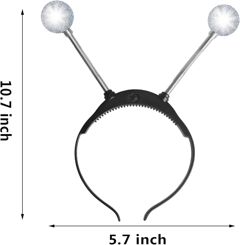 ONE SIZE FITS ALL - The Led Alien Headband size: 10.7 x 5.7 inch (L x W). One size fits all. Suitable for children, teens, adults etc. Alien antenna headband looks shining and dazzling after turning on the lights, reflects different colors. Wear it and you'll be the center of attention!