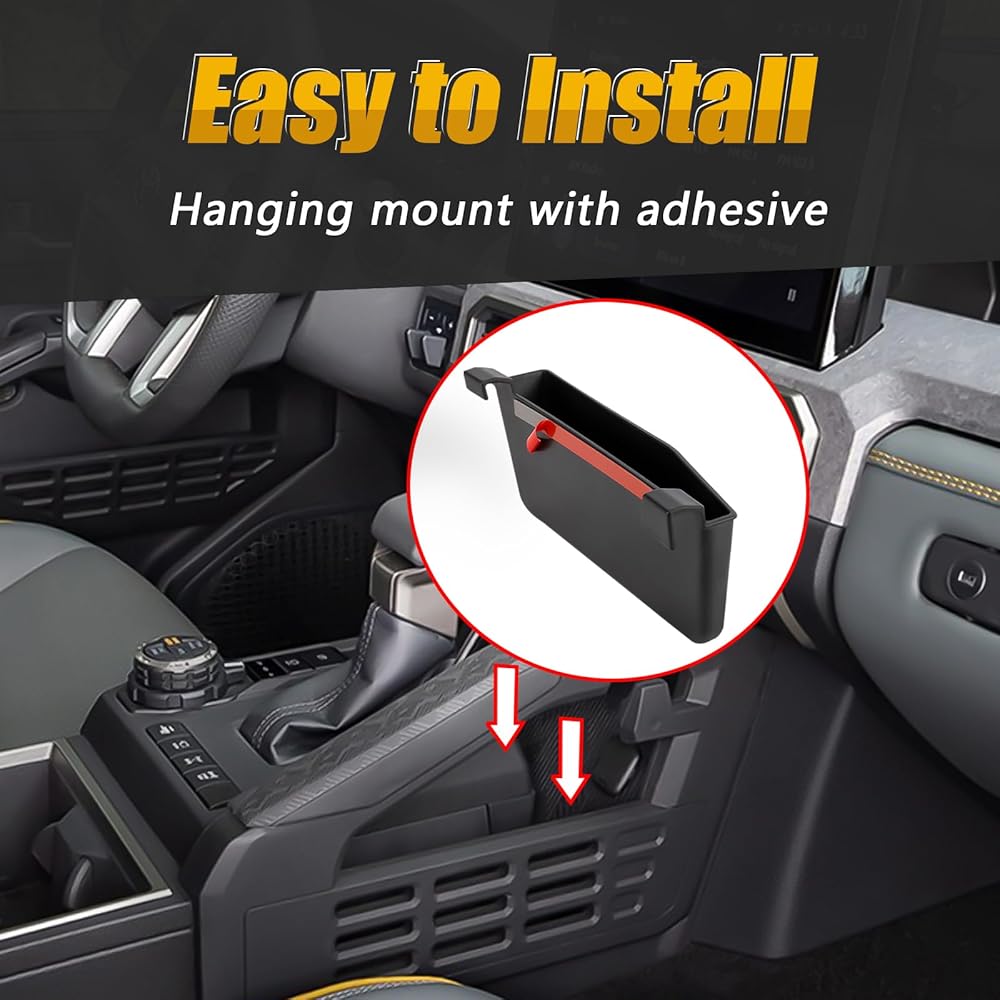 Installation: No tools required; Simply insert the console tray into the appropriate position; we provide a 3M adhesive on the back of the product, tear the protective film and stick it on to help you more firmly stable console organizer