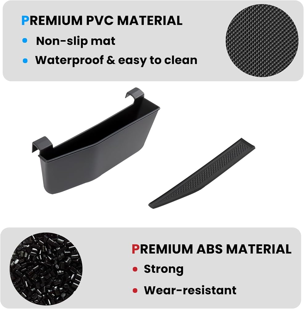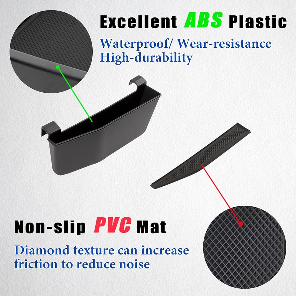 Premium Materials: Center console tray made of black ABS plastic, it is tough enough to withstand the impact of your driving on the road; It is equipped with black rubber pads with friction to reduce the sound of objects colliding while driving