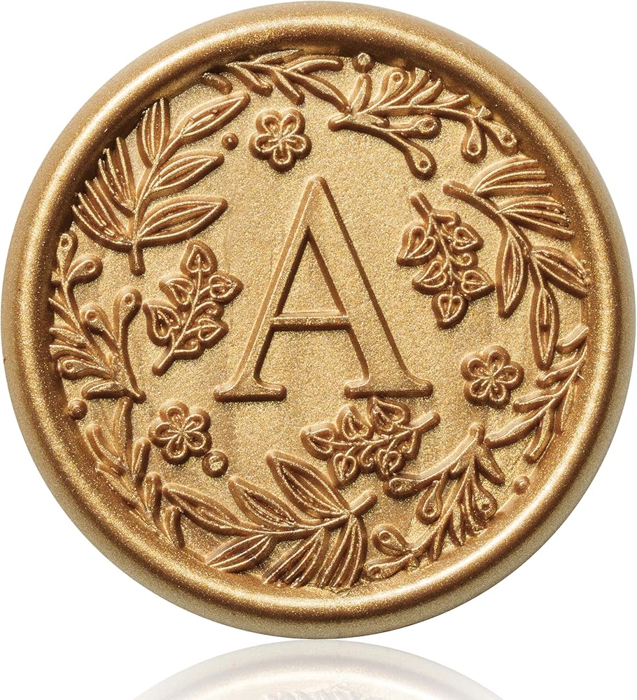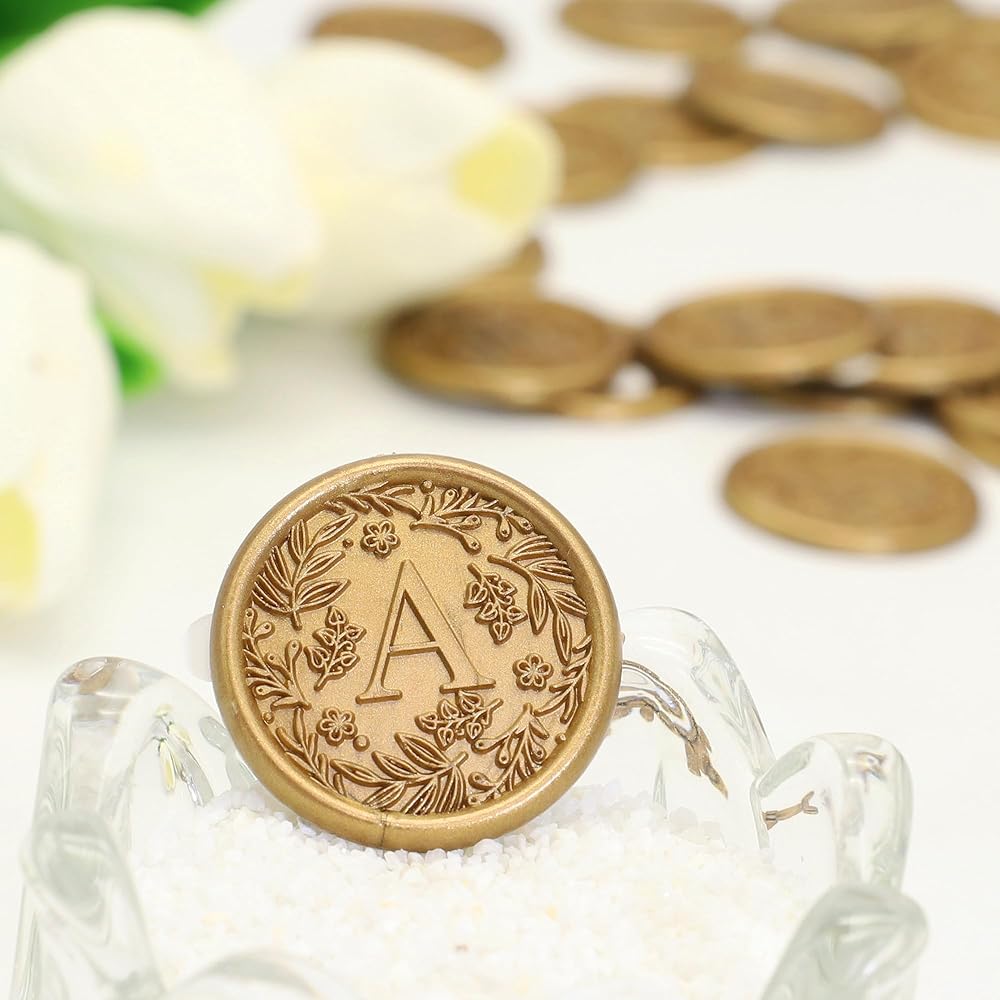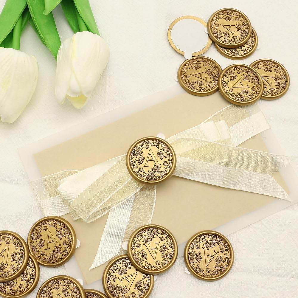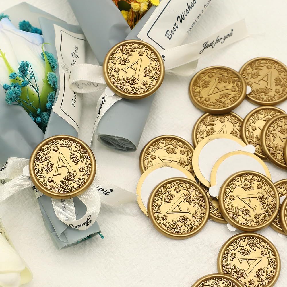 SWANGSA Letter Wax Seal Stickers, 30 Pcs Botanical Flowers Initial Alphabet A, Antique Gold Envelope Seals for Wedding Invitation, Christmas, Gift Wrapping