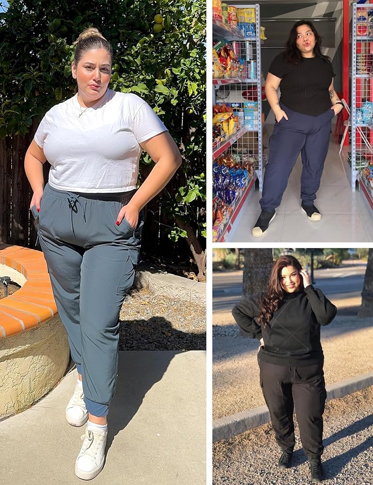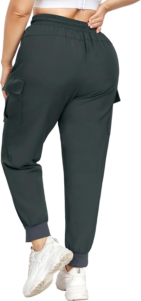 【Adjustable Fit for Comfort】The plus size athletic pants feature an elastic waistband with an adjustable drawstring to ensure a custom, snug fit. Plus, stretchy ankle cuffs allow the plus size stretchy cargo pants for a sporty look and easy wear, while keeping the plus size glide pants securely in place during active movements.