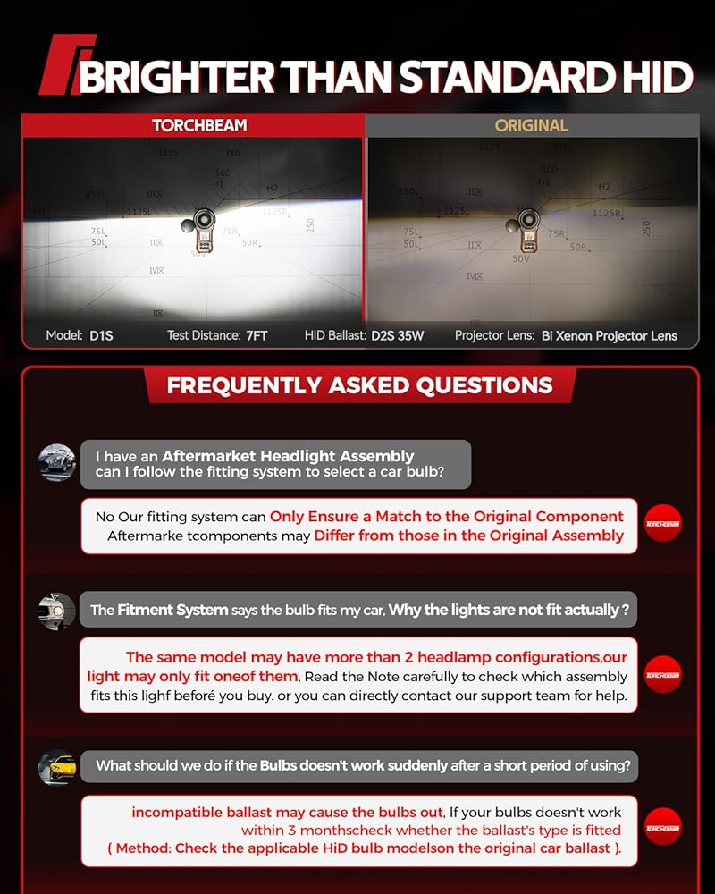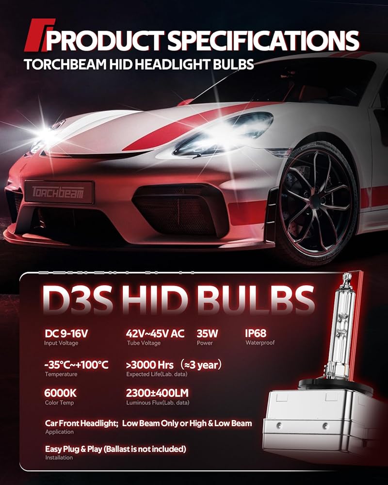 The Best Choice for Safe Driving: 3200LM bright light is 3X brighter than original bulb. 8000K ice blue let you get rid of yellow dim bulbs and see wider and clearer field of vision as in the daytime,Torchbeam d3s bulb ensure you safer driving at night