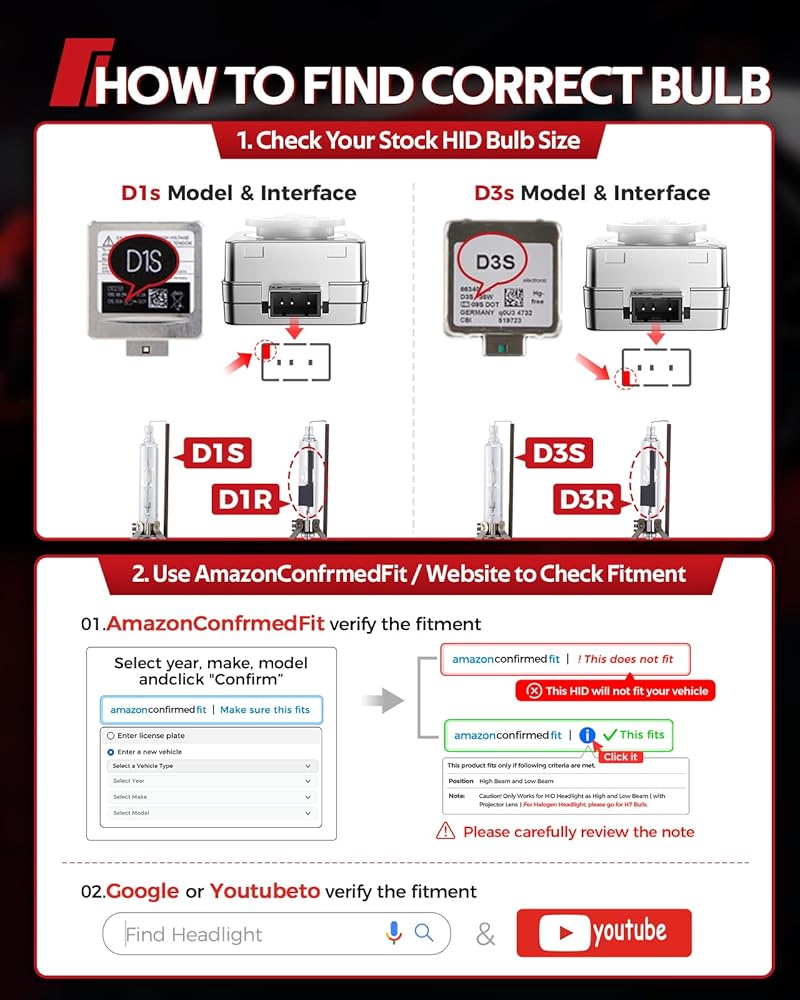 Important: D1s and D3s look very similar, please check carefully. You can contact our local US customer service with any questions, we will try our best to help you solve your lighting problem.