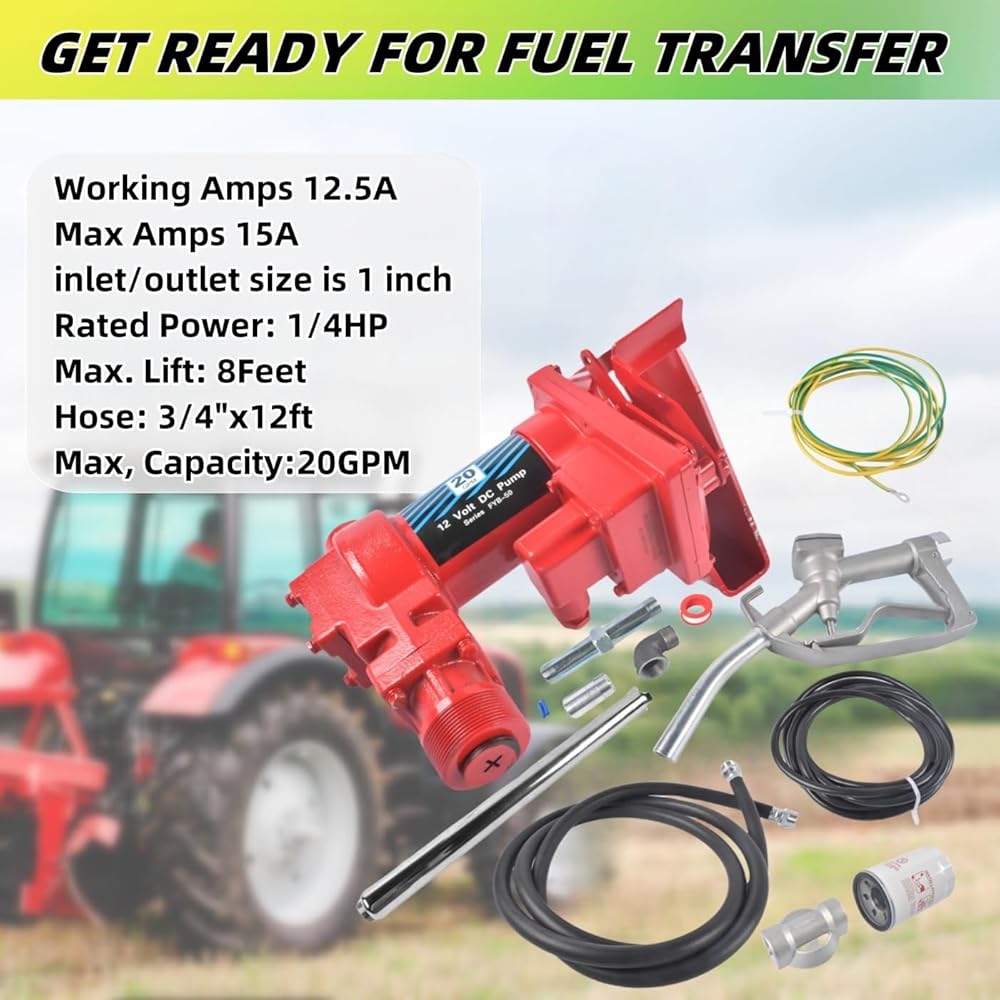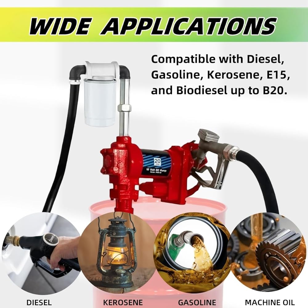 🚗【High Capacity】This industry standard DC pump dispenses up to 20 GPM, which could make fueling be more efficient. Designed for 12V battery powered bung mounted transferring from fuel tanks on trailers or trucks, It can pull fuel at depths of 9.8 ft. and discharge fuel up to heights of 26 ft. Larger flow rate, faster transfer, and higher efficiency meet your higher use needs.