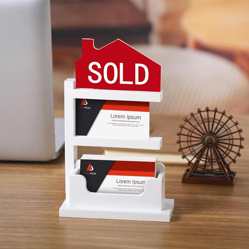 You will get a wooden business card holder, can hold the cards in about 3.5 x 2 inches, their design can be nice decoration to your desktop.