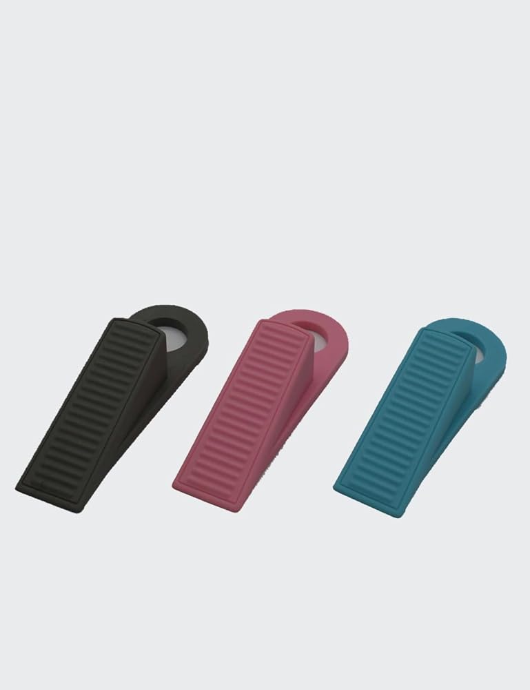 Introducing our 3 Pack (Grey/Blue/Rose) 1 Inch Thick Hook Door Stopper - the perfect solution to secure your doors and control the size of the door gap. Crafted from high-quality rubber, this door stopper is suitable for all floor surfaces and provides reliable support to prevent accidental door slams. Our decorative door stoppers for the bottom of the door are designed to enhance the aesthetics of your space while offering exceptional functionality. With its versatile design, it effortlessly blends with any decor style. Safety is our top priority, and that's why our door stopper is made of rubber, ensuring a secure grip and preventing doors from unexpectedly closing. The compact and portable size makes it convenient to take along during travel, providing you with the same level of security wherever you go.Whether you need a door stopper for your home or office, our rubber door stopper wedge is the perfect choice. It effectively stops the door from moving and eliminates the risk of accidents, giving you peace of mind.Invest in the safety and security of your space with our reliable and stylish door stopper.