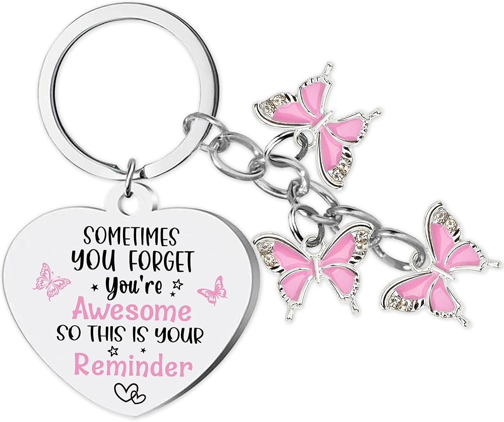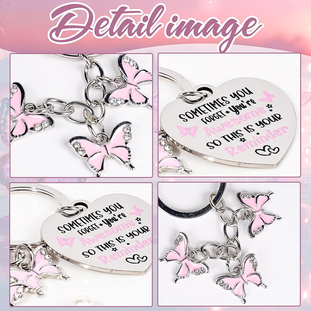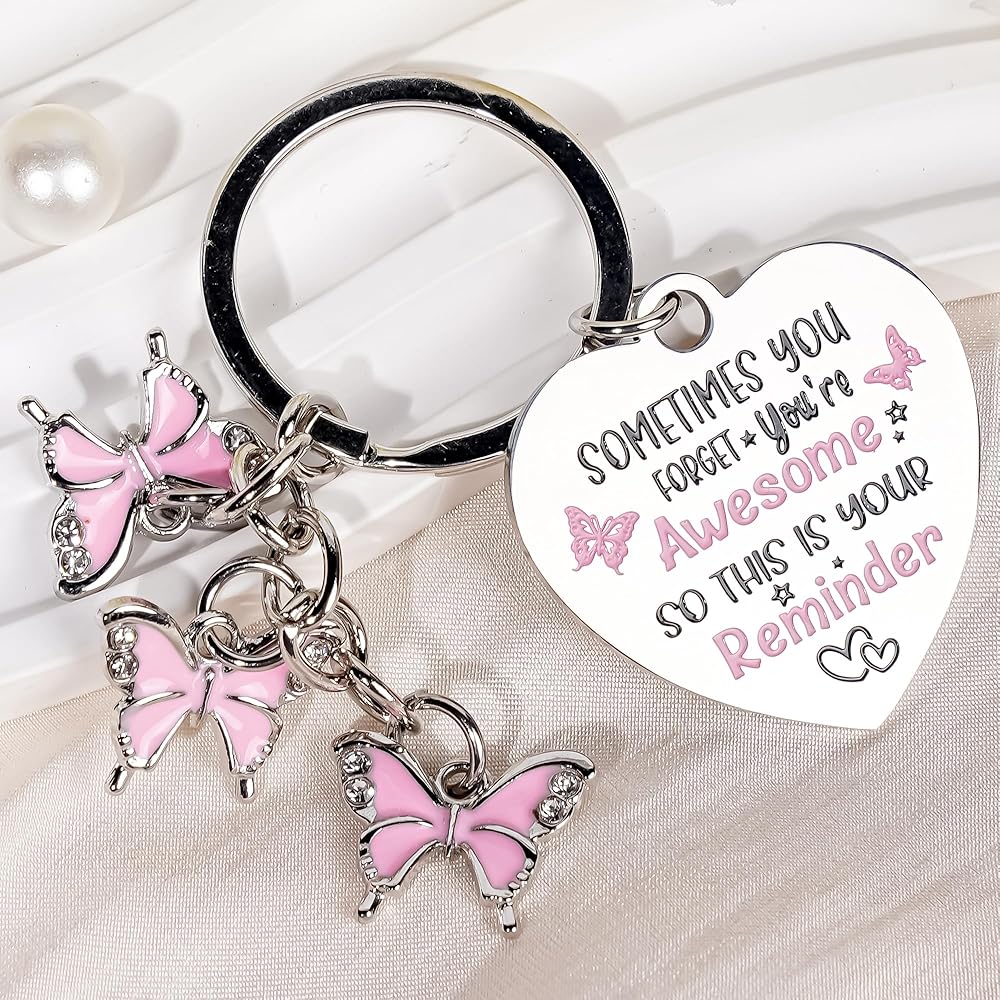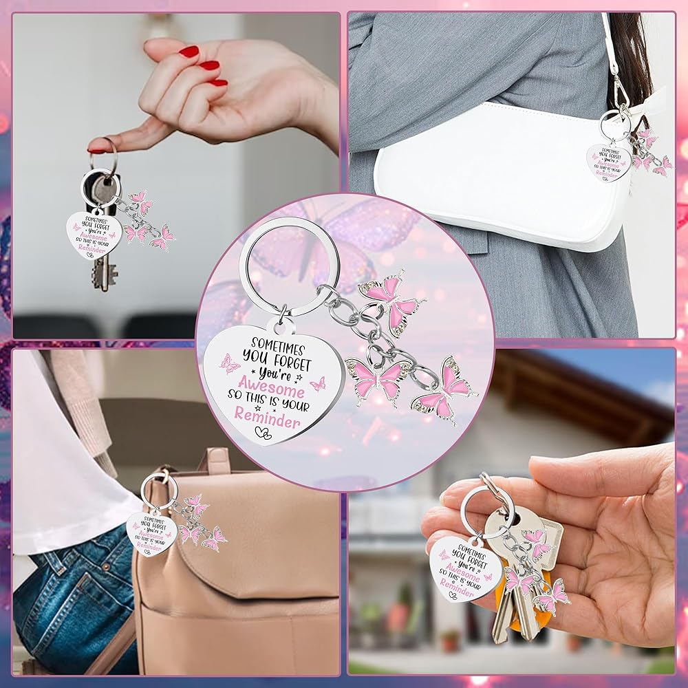 Encouragement Gifts for Women: The keychain features the uplifting phrase, "Sometimes you forget you're awesome, so this is your reminder." This delicate engraved keychain and charming Pink butterfly pendant are perfect reminders to live with confidence. Offering the butterfly-inspired keychain to your loved ones