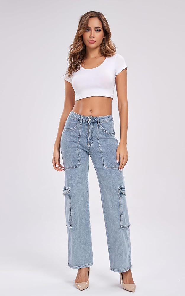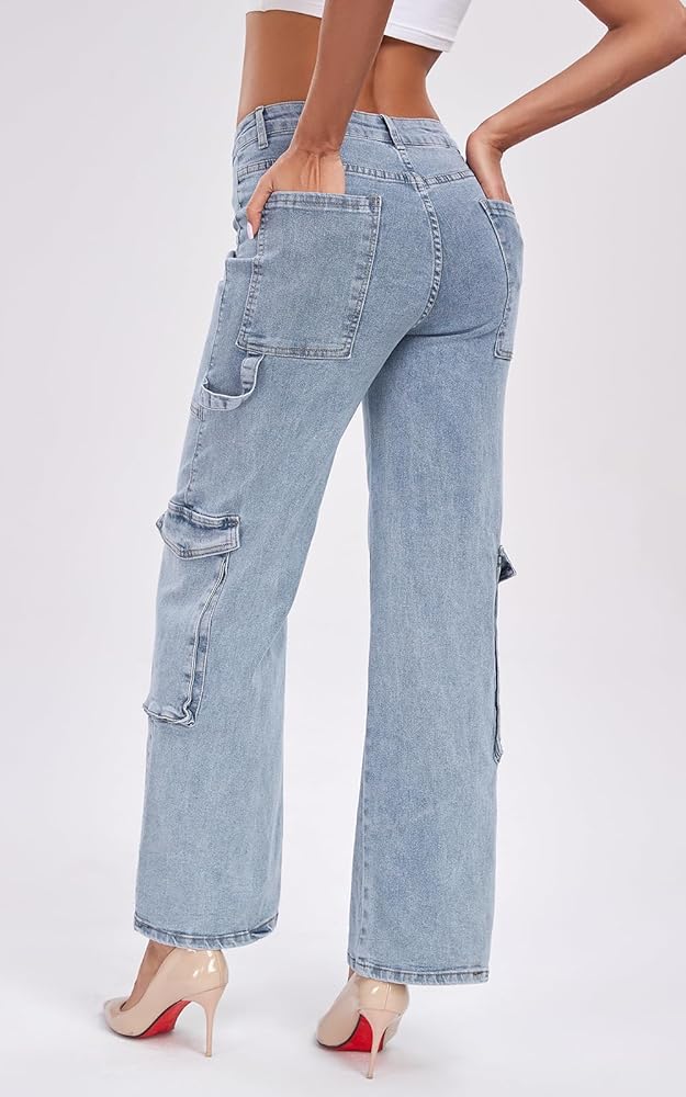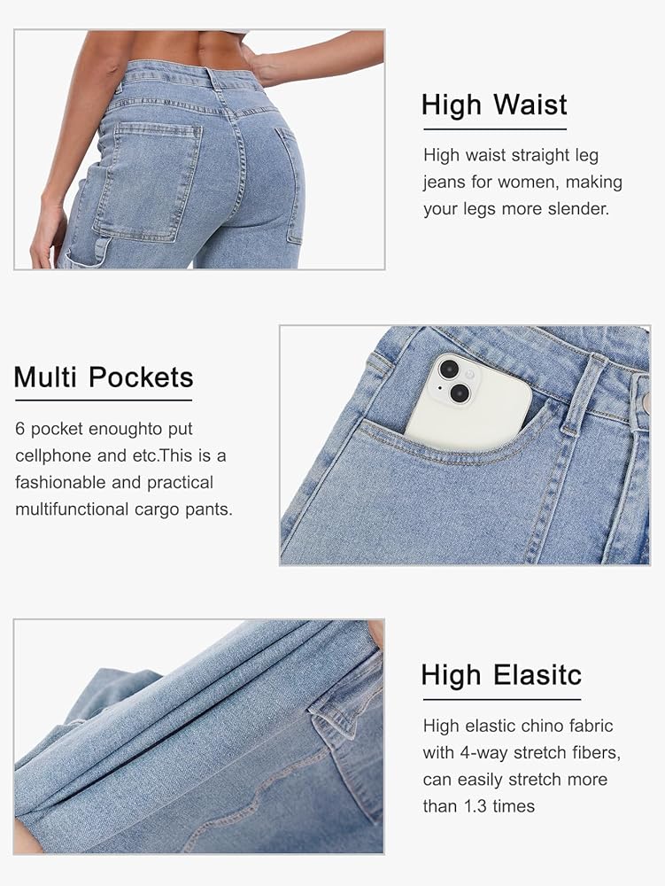 【Classic High Rise Straight Leg Cargo Denim Fit】: Boyfriend jeans for women, these baggy jeans are designed to flatter your figure. The high waisted design and unique straight tube shape can elongate the proportion of the lower body, making your legs more slender. 6 pocket women jeans, simple and generous, make you look fashion, It is a good Y2K streetwear pants.
