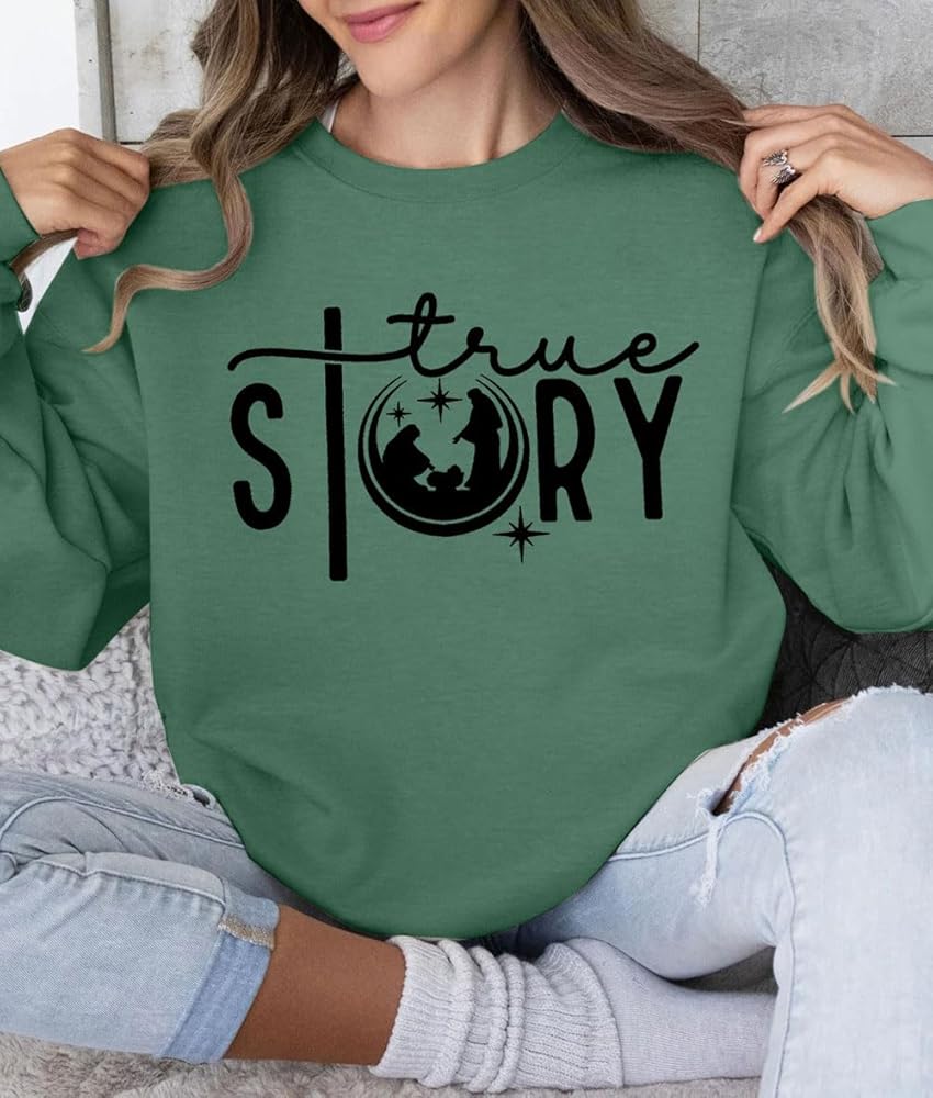 CHRISTMAS TRUE STORY SWEATSHIRT: Believe that the birth and resurrection of Jesus are real story, making it an ideal choice for those who want to express their faith and share their love for the true meaning of Christmas. Praying on Christmas Eve.