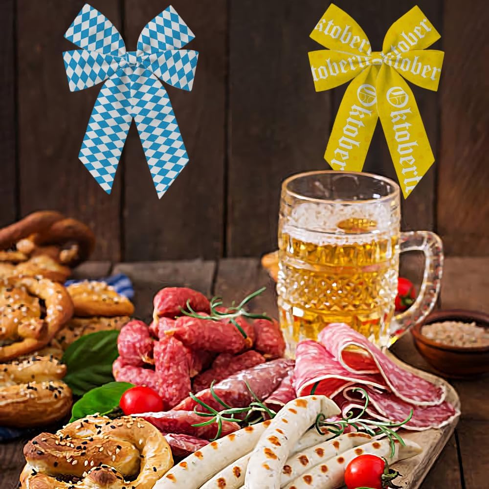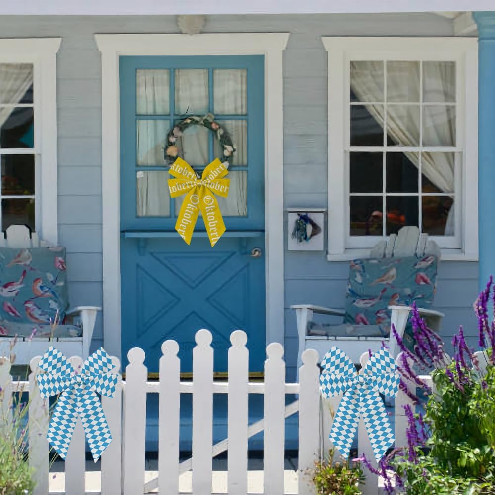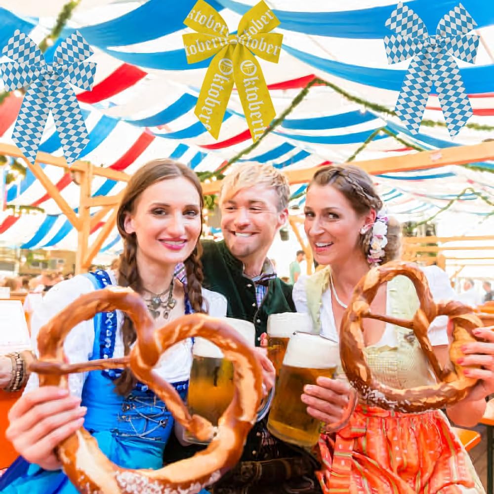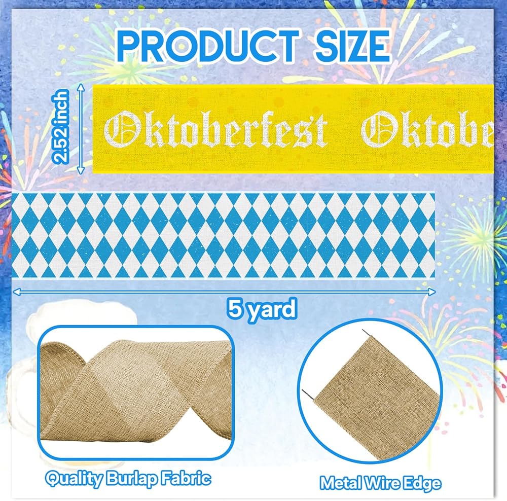 • Oktoberfest Design: Our ribbons feature the iconic blue and white diamond plaid pattern, along with a yellow ribbon printed with the word “Oktoberfest.” These classic designs add a festive and authentic touch to your decorations, making them perfect for creating an Oktoberfest atmosphere at parties and events.