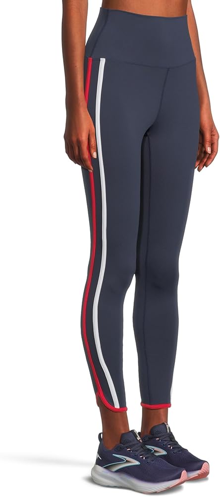 Full length legging with a high waist with piping details on the side and a tulip hem