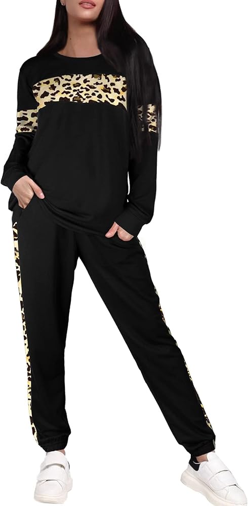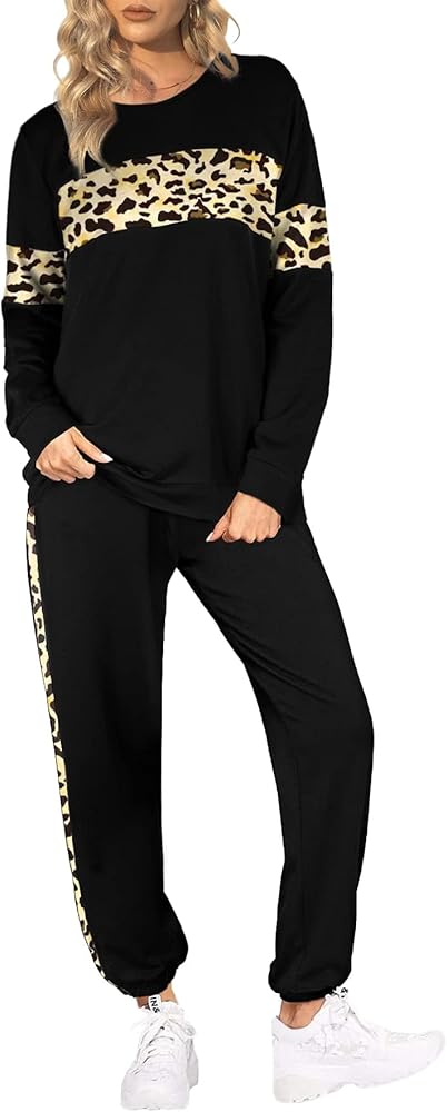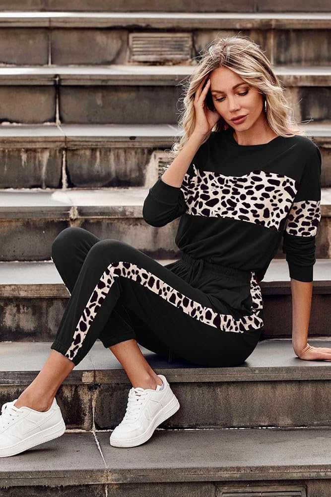 Casual Leopard Sweatsuits Sexy Tracksuit Women 2 Piece Sets Suitable for Spring,Summer and Fall.soft,breathable,lightweight but not too thin,Comfy to Wear.