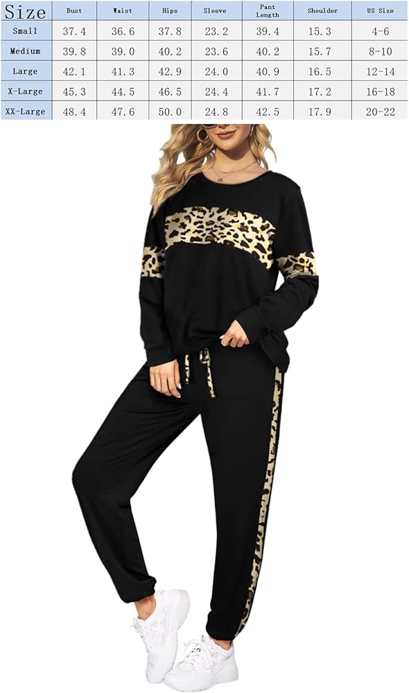 Package Contents : 1 x Leopard Sweatsuits Suits For Women.(Tops and Pants). Size:S-XXL,Color:Black/Blue/Grey.