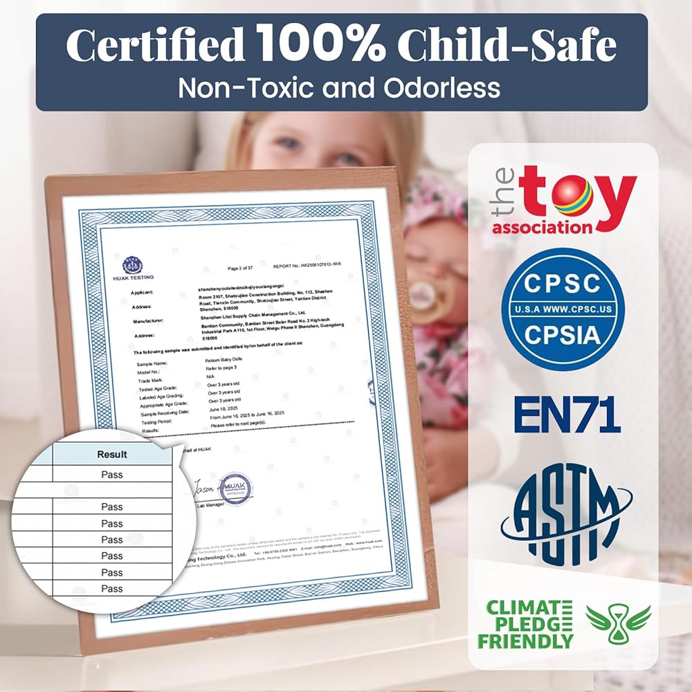 Poseable and Playful: This realistic baby doll's arms and legs are fully poseable, allowing for various postures, whether sitting, lying down, or being carried around for play. Designed to meet or exceed ASTM F963 and EN71 safety standards for ages 3 and up, she is as safe as she is delightful for your child