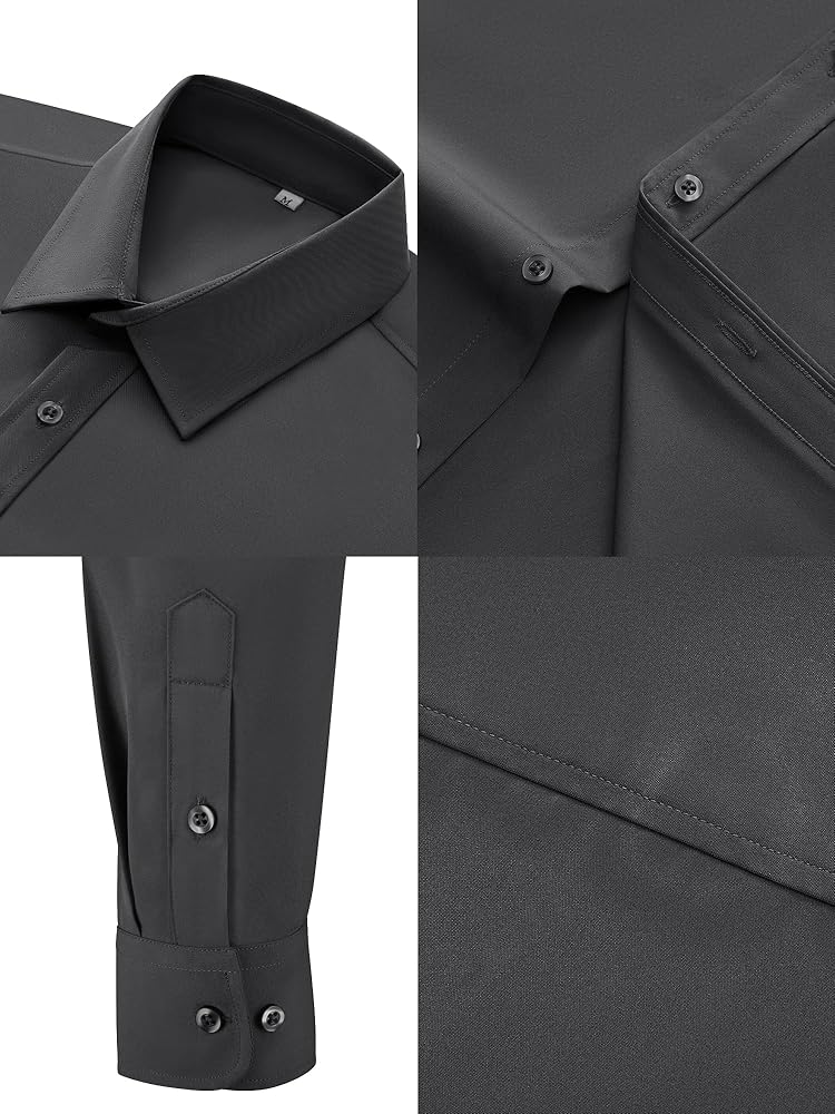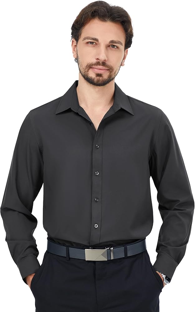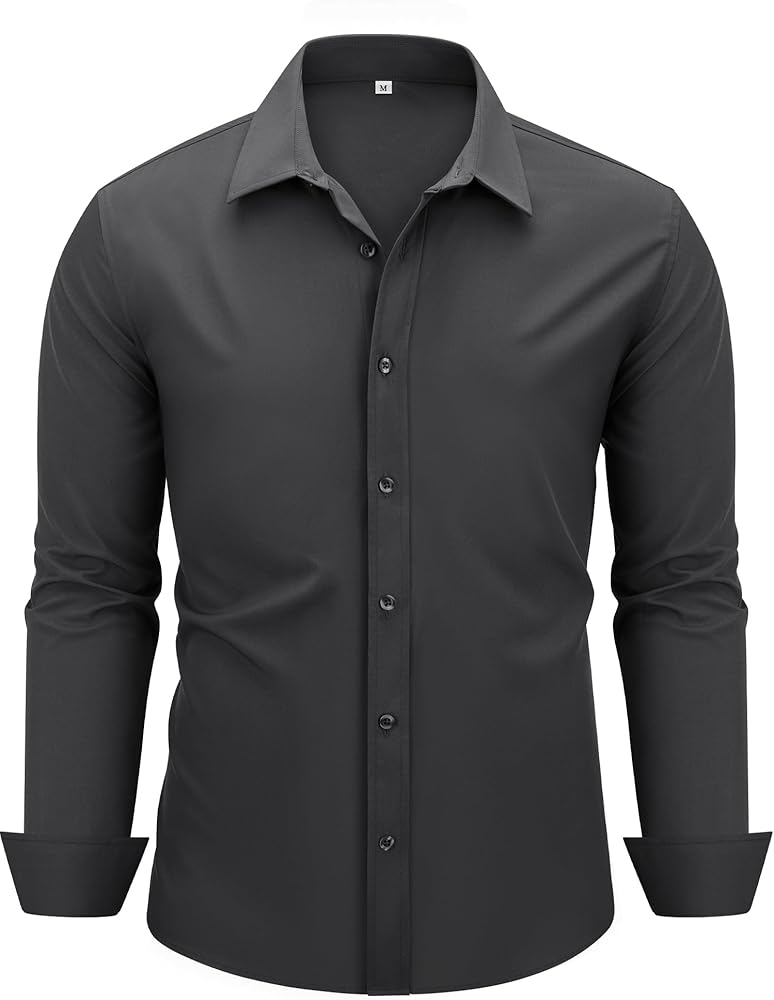 MAGE MALE Men's Dress Shirts Solid Long Sleeve Stretch Wrinkle-Free Formal Shirt Business Casual Button Down Tops