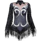 ❤ALLURING ATTIRE:adorned with sparkling diamantes and lustrous pearls, featuring long sleeves and tantalizing tassels Bodysuit ,The fringe drapes from the scoop neckline all the way down to the bottom hem and between the legs for complete glitter from neck to toes