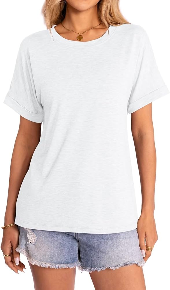 Features: Crew Neck Shirts, Rolled Sleeve T Shirt, Short Sleeve Shirts, Women's Summer Tops, Solid Color, Classic, Basic, Cute and Casual Tops; Loose fit short sleeve shirts is suitable for women of all body shapes