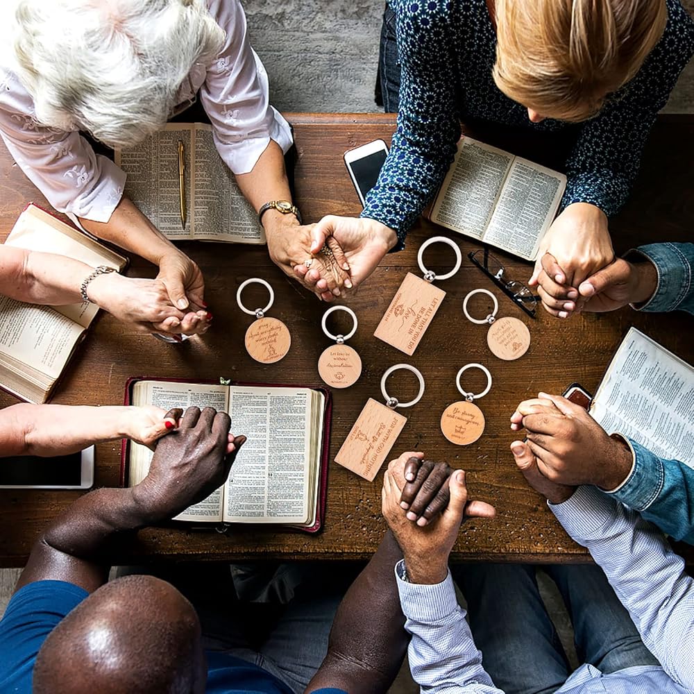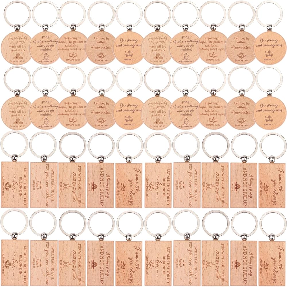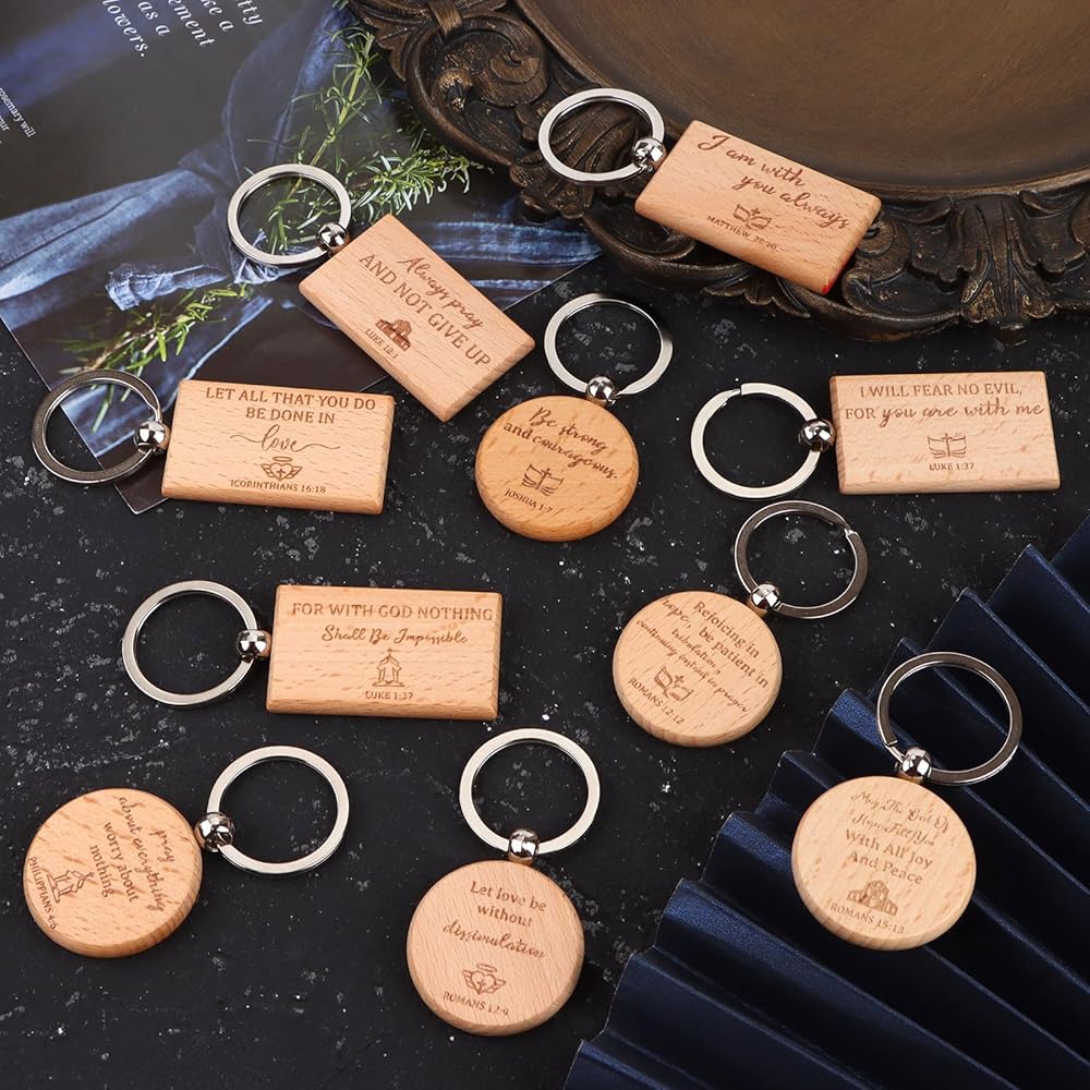 Bible Keychain Set--You will receive 60 pieces of wooden christian bible keychains in 2 shapes-round and rectangle,5 different styles for each shape,6 pieces for each style.Sufficient quantity is enough to meet the daily decoration needs of you and your family.