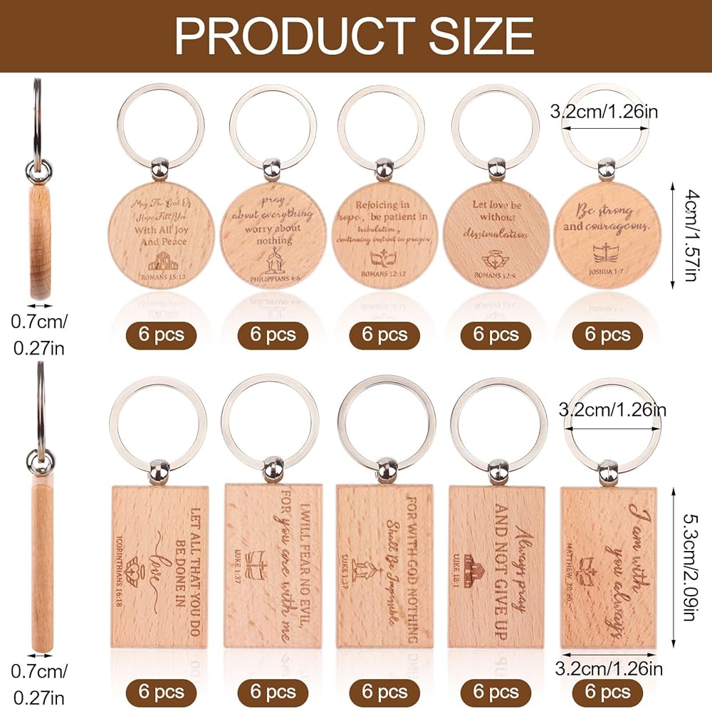 Durable Material--Our religious key chains are mainly made of quality wood material,sturdy and smooth,suitable for long term use.Compact and portable,easy to carry and store.The key chain style is elegant,rustic and exquisite.