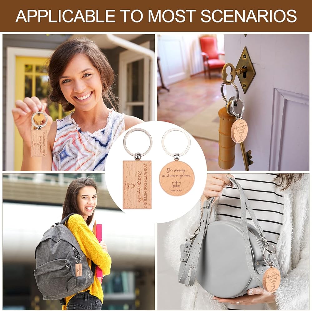 Engraved Christian Quotes--Wooden inspirational keychain adopts engraving design,decorated with Christian bible verse and motivational sayings on one side.Those motivational quotes are good reminders for those who sometimes need a little inspiration and strength.WARM TIP:Due to the limited engraving area of the wooden keychain,we only took the essence of the Bible and engraved it on it!