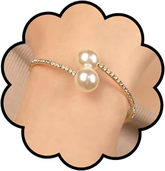 Exquisite Style: This crystal rhinestone cuff bracelet showcases an elegant open design adorned with dazzling rhinestones and pearls for a stunning sparkle