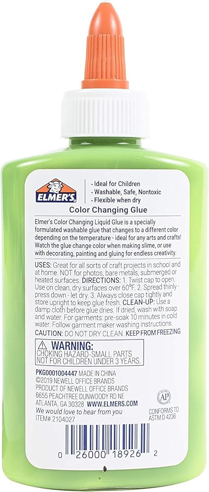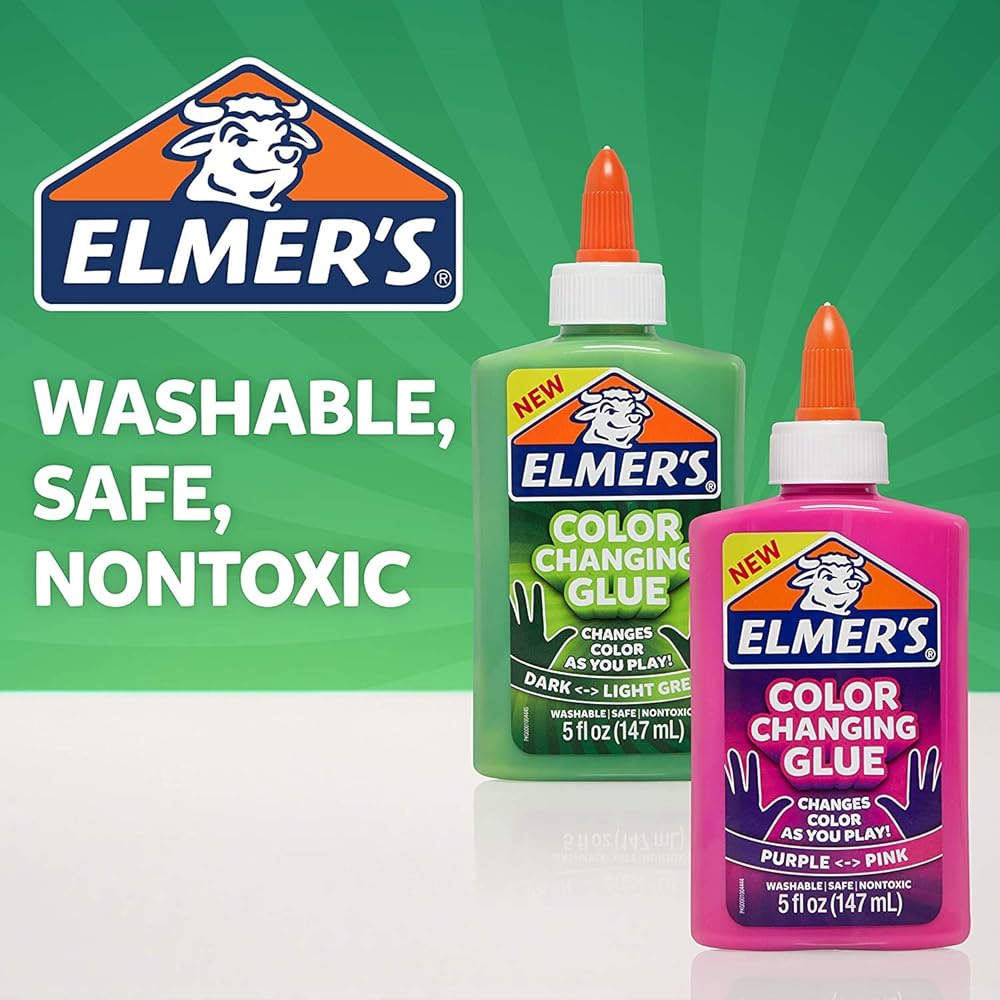 You'll love making slime that changes color in your hands with Elmer's Color Changing Glue. It's the essential ingredient for making slime that changes from pink to purple as you play. It's a specially formulated washable glue that's safe and nontoxic, making it an ideal choice for kids. Simply mix with Elmer's Magical Liquid (not included). Try different combinations for endless slime creations.