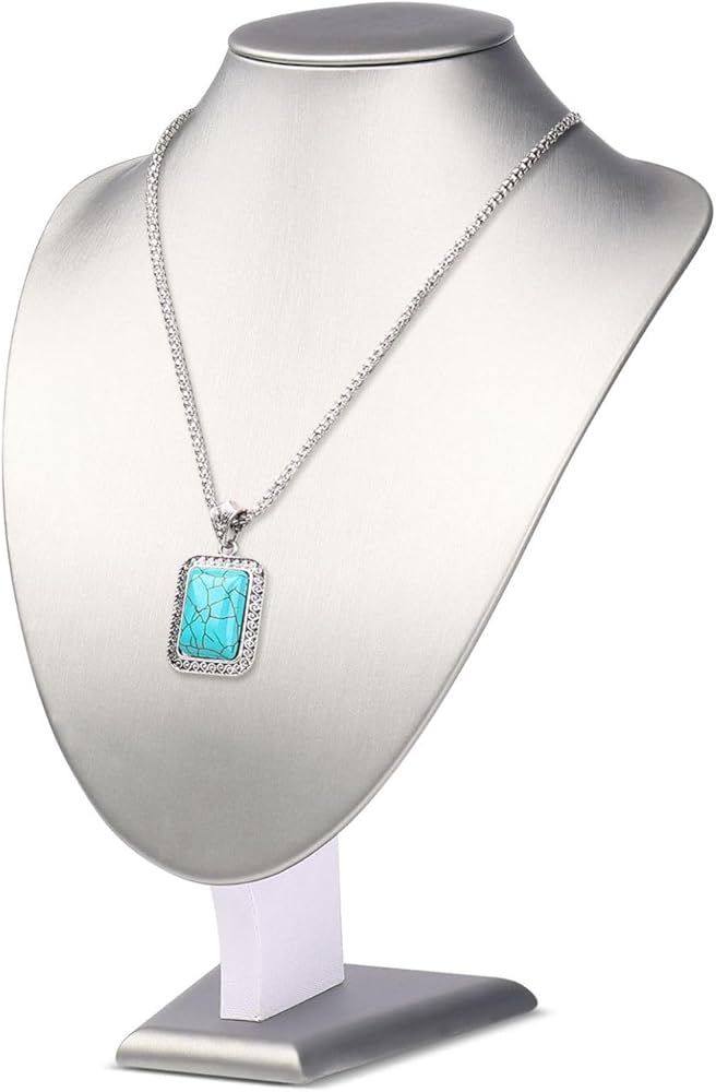 Introducing our versatile gray PU Plastic bust necklace mannequin for jewelry selling and displaying, perfect for showcasing necklaces, chokers, lockets, chains, and pendants. This jewelry necklace display adds a touch of sophistication to any setting, whether for home use, small businesses, boutiques, retail environments, or trade shows. Our jewelry display stand is crafted from soft, luxurious PU Plastic; the bust enhances the visual appeal of your jewelry, making each piece stand out beautifully. With a robust base, this bust necklace stand display ensures stability and is ideal for countertops, display cases, or shelves. Its lightweight design emphasizes portability and ease of use, allowing easy transportation. This PU Plastic necklace holder is perfect for storefront windows and collections, measuring 7.9"W x 6.3"D x 11"H. This jewelry display for necklaces of various sizes, with a recommended length of up to 18 inches. Showcase your jewelry in style with our Gray Necklace Display Bust.