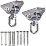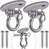 🛠【Easy to install】Just use the included 4 wood screws to fix the hangers on any wooden beam. If you want to install them on concrete ceiling, you can buy expansion bolts separately. The detachable swing ring allows you to connect any chain, rope or buckle easily.