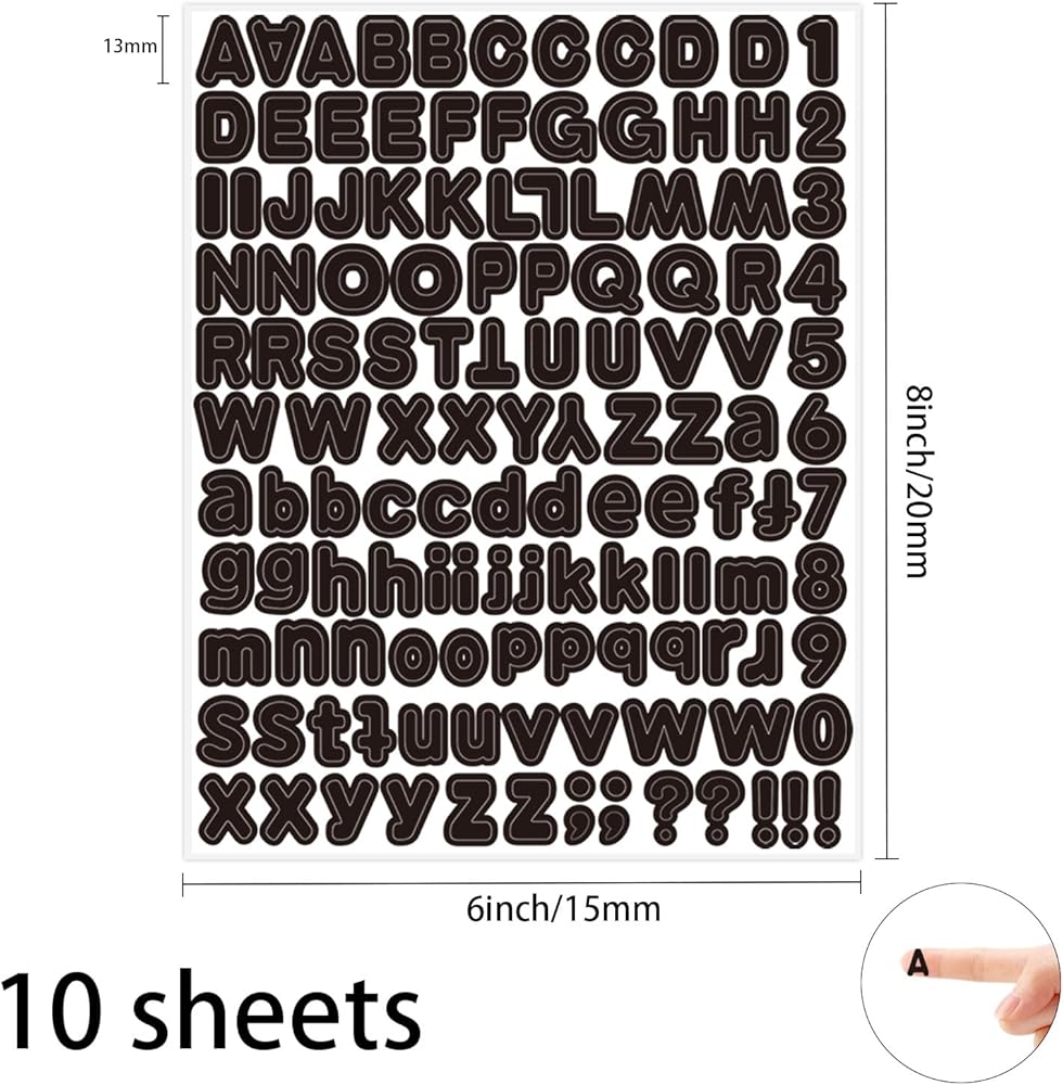 Letter Sticker,1/2 inch 10 Sheets Black Alphabet Sticker,Self Adhesive Vinyl Letter Stickers Mailbox Numbers,Self Adhesive Letters Stickers for Bulletin Boards Classroom Home Decor
