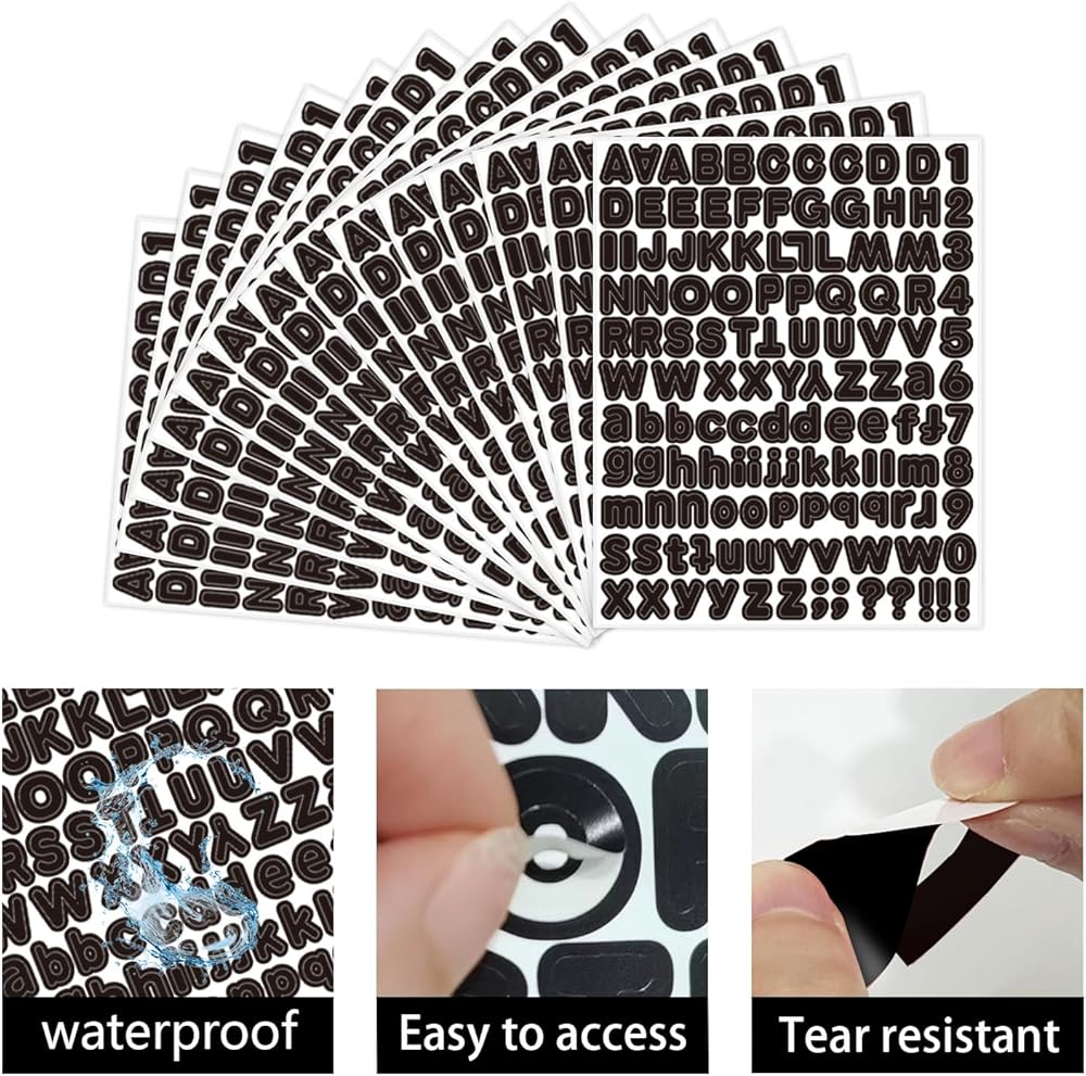 Widely applicable: These small letter stickers can be applied to dry, clean, smooth, and hard surfaces such as wood, tiles, metal, glass, etc. They are suitable for outdoor signs, mailboxes, windows, walls, doors, posters, scrapbooks, water bottles, luggage, guitars, bicycles, notebooks, room number labels, school signs, and other places you like.