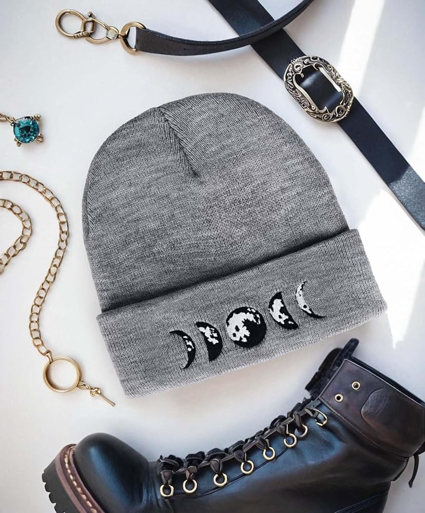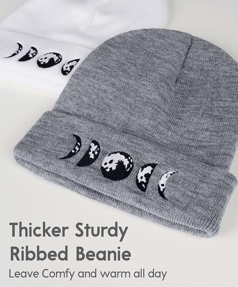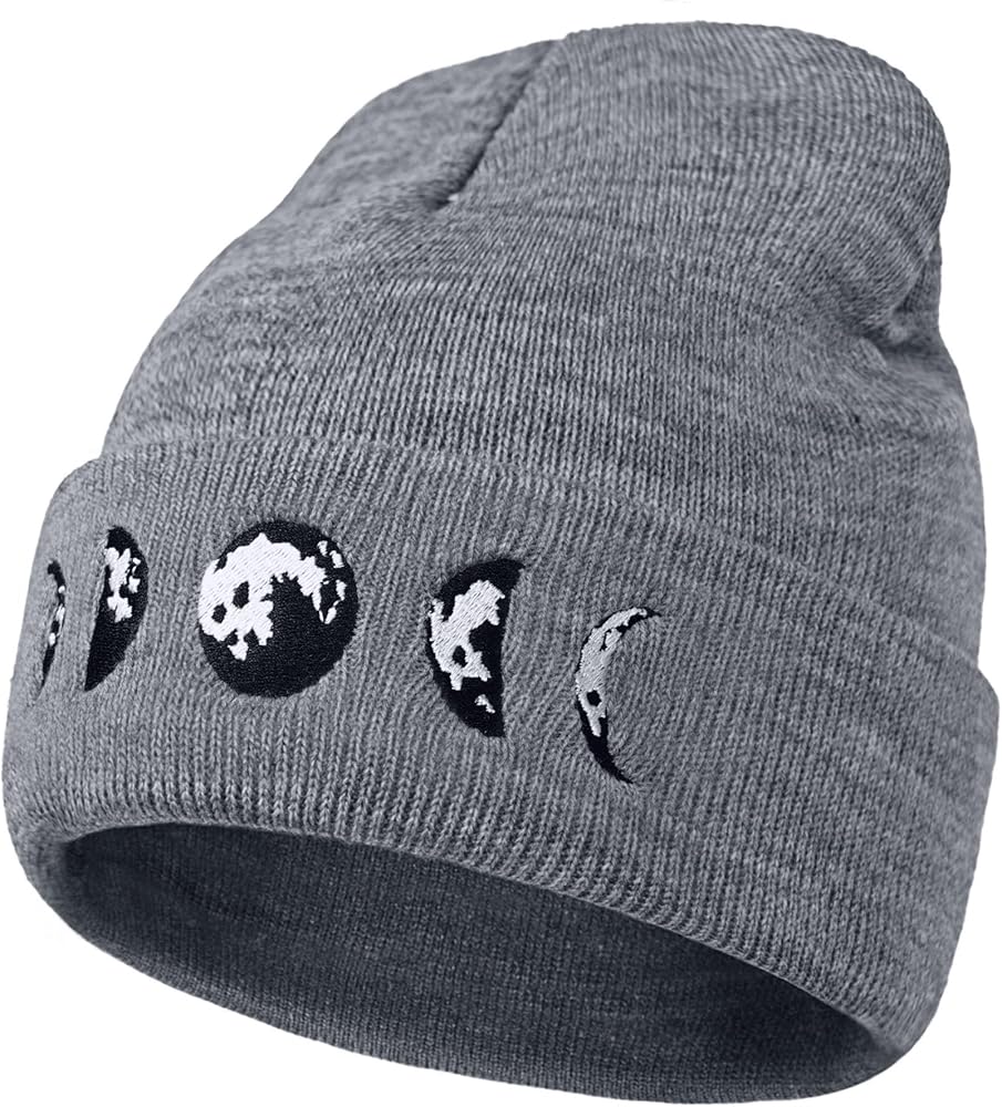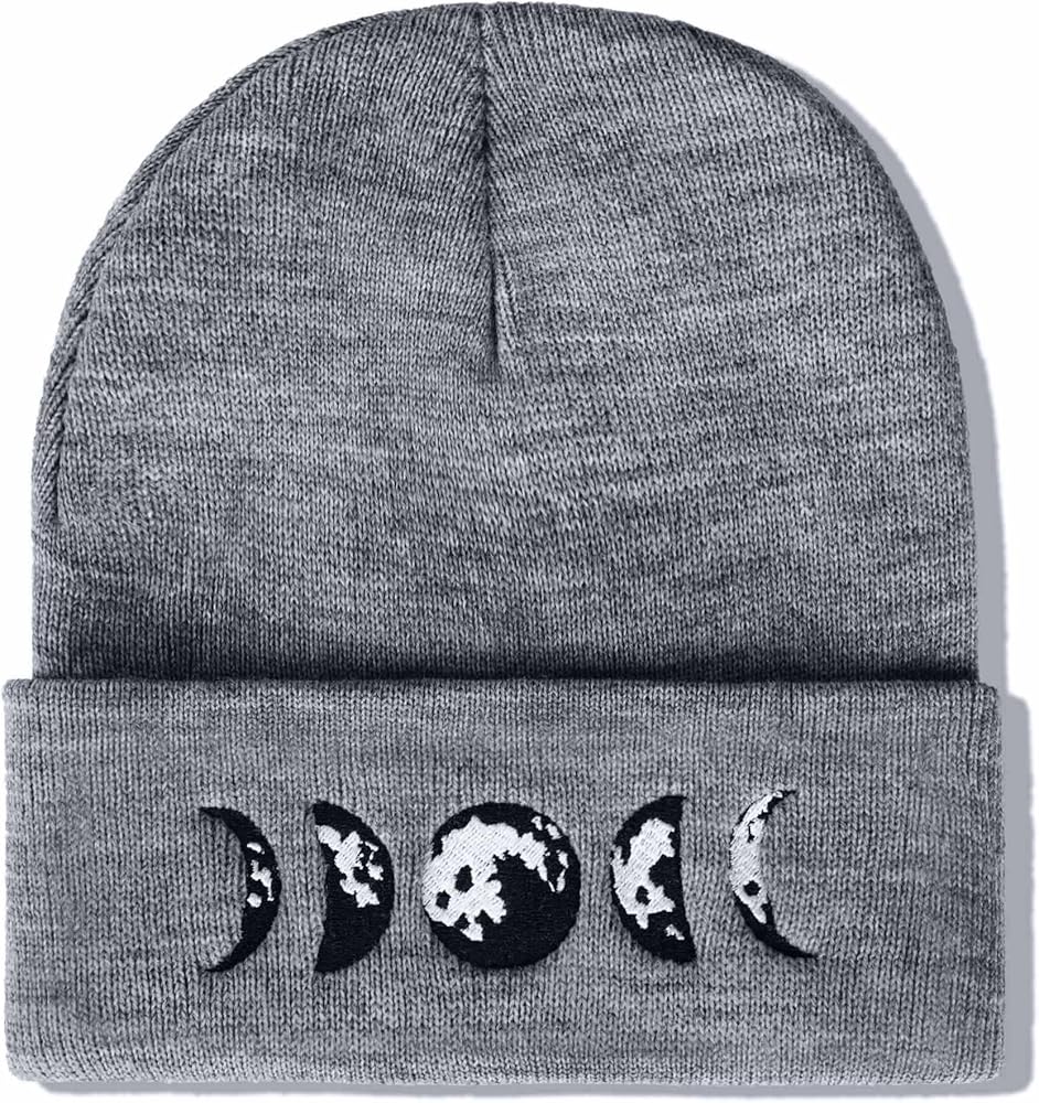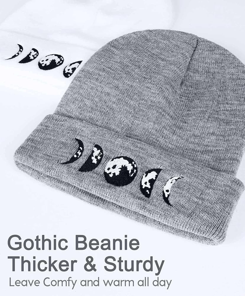 【Stylish and function】Stand out from the crowd with this gothic moon phase beanie hat featuring personalized embroidery that keeps your head warm while being stylish and fun without being monotonous. It can be easily paired with any outfit for a stylish look. Whether it's for fashion or practical purposes, the cool gothic wool hat is an essential must-have for your closet.