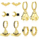 MOONWALTZ Halloween Earrings Set for Women Funny Stud Earrings for Multiple Piercing Costume Party Jewelry Gifts 14K Gold Plated Spider Pumpkin Witch Hat Ghost Huggie Hoop Drop Earrings