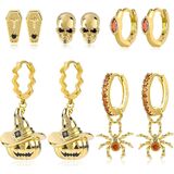 🎃GOLD HALLOWEEN EARRINGS SET🎃The gold Halloween earrings set features a festive and distinctive design, including five unique earrings: a coffin stud, a skull stud, a huggie hoop inlaid with red zircon, and two huggie hoops each adorned with a spider pendant and a pumpkin pendant. Each earring is intricately crafted, showcasing exquisite and spooky Halloween elements. Whether worn individually or combined, the earrings will make you the center of attention at any Halloween party.