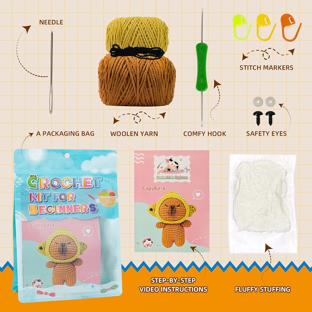 All-In-One Crochet Starter Kit: Y-times beginner crochet kit includes everything you need to start: 4 different colored yarns, ample stuffing, 1 needle, 4 eyes, 3 stitch markers, 1 ergonomic crochet hooks, 1 crochet Gorilla pattern, and a beginner's basic crochet manual.