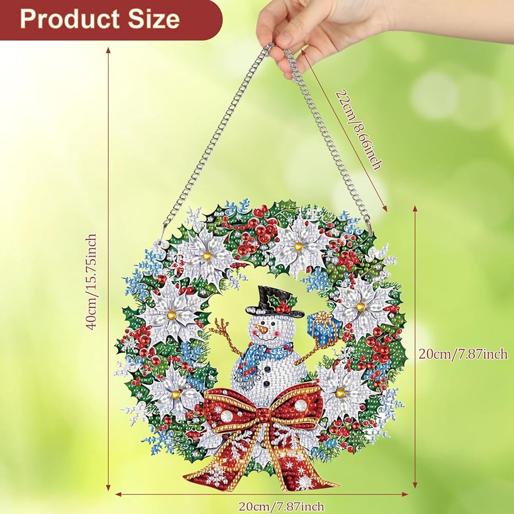【Versatile Decoration】It is not only a handicraft but also a home decor. You can decorate your home with a piece of artwork that you create yourself. The snowman diamond art hanging ornament can decorate your door, window, wall, garden, your car etc. It's also a perfect choice for holidays, parties, or birthdays for your loeved.