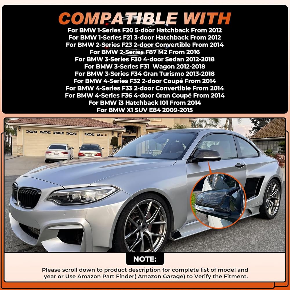 【Vehicle Fitment】 Carbon Fiber Car Wing Mirror Covers Caps are compatible with BMW 2017 2018 2019 2020 2021 2022 3 series G20 G21 320i 325i 330i 4 series G22 G23 G26 5 series G30 G31 525i 530i 540i 7 series G11 G12 8 series G14 G15 G16. Please enter your vehicle model in the amazonconfirmedfit tool for verification before ordering