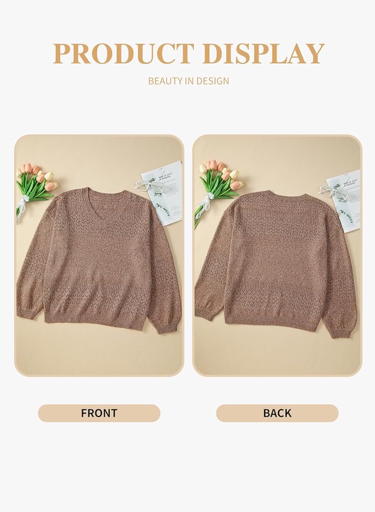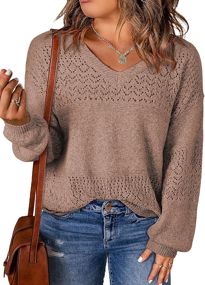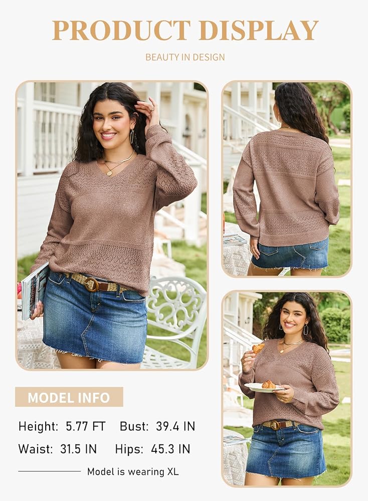 Stylish Design: Plus size sweaters for women features a trendy crochet design, sexy v neck, long sleeves, relaxed loose fit, solid color, these plus sweaters offer a comfortable and flattering fit for every body type.