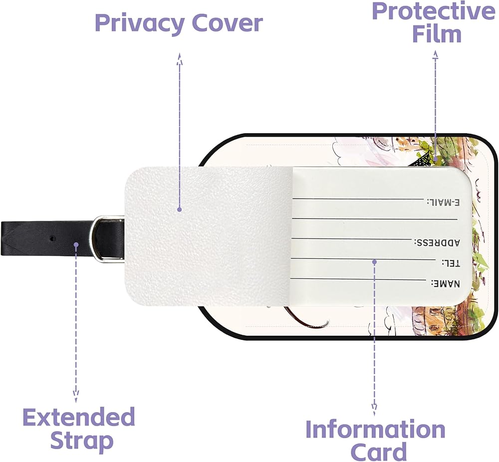 Privacy Cover:Luggage Tags for Suitcase has an information card and a privacy cover.Write your personal information on the information card to prevent the luggage from being lost or mishandled.Privacy cover can hide personal information and protect privacy.There is a waterproof transparent PVC layer under the cover to prevent personal information from being damaged during travel