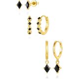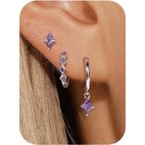 【14K Gold Earrings Set】3 different 14k gold earrings in a set: 1-pair diamond stud earrings, 1-pair small huggie hoops earrings and dangle earrings. Each simple and stylish gold earrings set has been carefully designed and matched. 14k gold plated earrings set can be worn single or paired with other hypoallergenic earrings