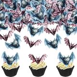 Ercadio 40Pcs Edible Wafer Paper Halloween Bats Cupcake Toppers Edible Bats Cake Picks Halloween Horror Bats Cupcake Decors for Halloween Theme Baby Shower Party Cake Decoration