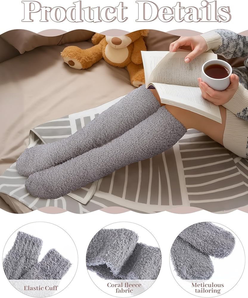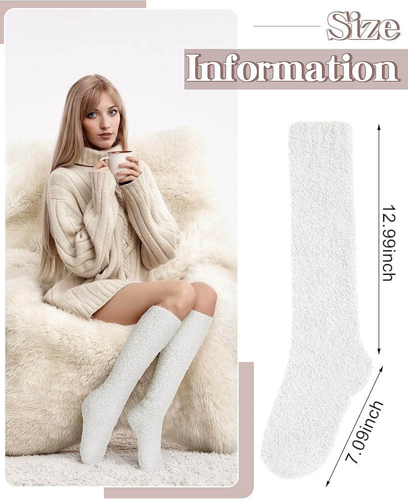 Soft and Warm Material: these cozy over the knee socks are made of coral fleece material, which is friendly to skin and comfortable to wear, not easy to fade or break that can be applied for a long time, and these long fluffy socks are convenient to put on and take off, bringing you a nice wearing experience