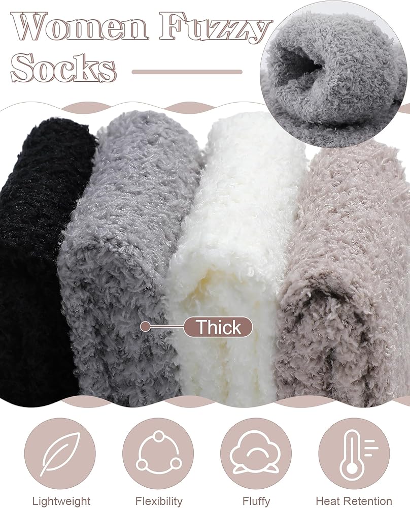 Long Fuzzy Socks Set: you will receive 4 pairs of long fuzzy socks in different colors, you can match them with any clothing you like to satisfy your daily wear needs