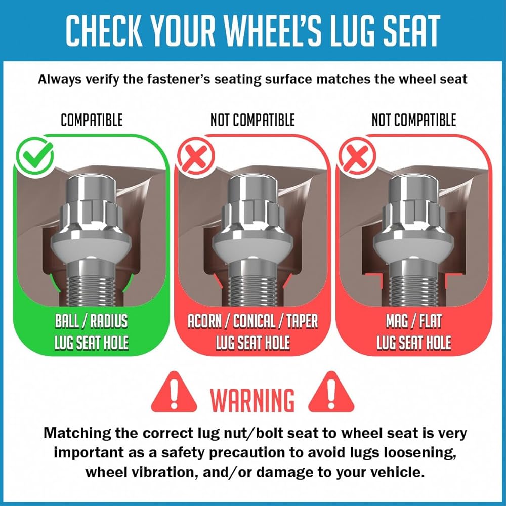 ❌Lug Bolts are designed specifically for OE Wheels with a large seat area to insure proper clamping. Please confirm lug seat requirements before purchase.