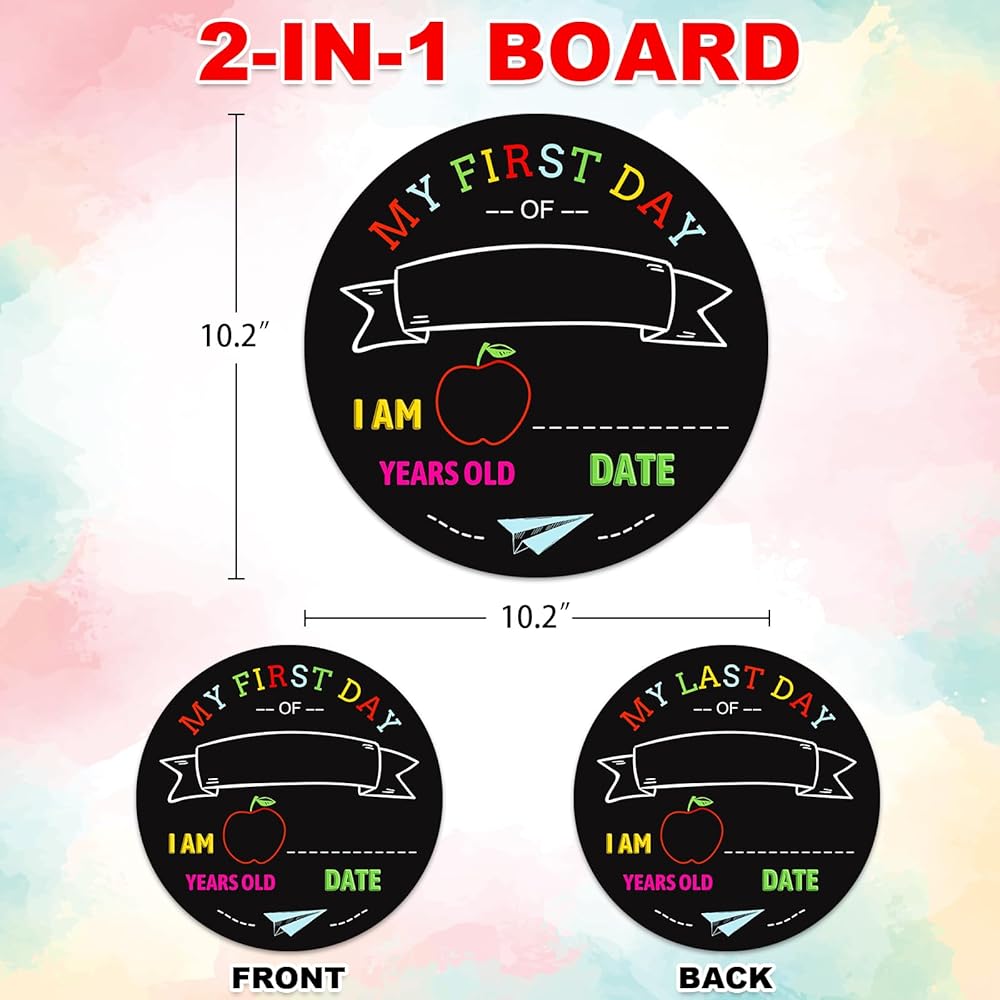 Material & Size - This first day and last day of school sign is made of high-quality density board, thick and durable. The 10.2" x 10.2" round first day of school chalkboard sign is a perfect size for photo props and an ideal first day of school gift for children kids boys girls daughter son grandson granddaughter students.