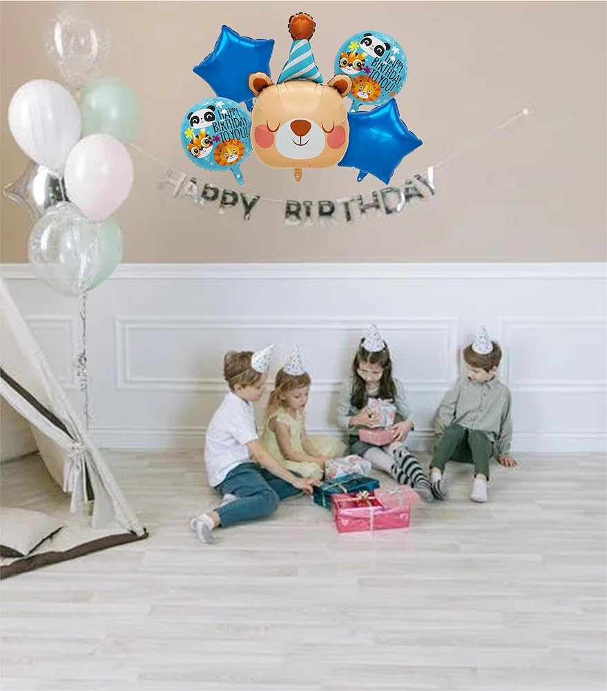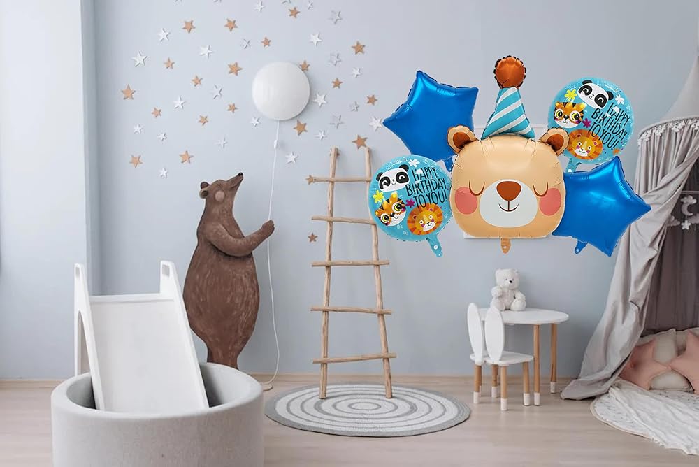 3D Bear Balloon,Kids Happy Birthday Star-shaped Balloon Party Decoration,Baby Shower Children Jungle Themed Decorations Woodland Safari Animal Balloons,5Pcs of Set